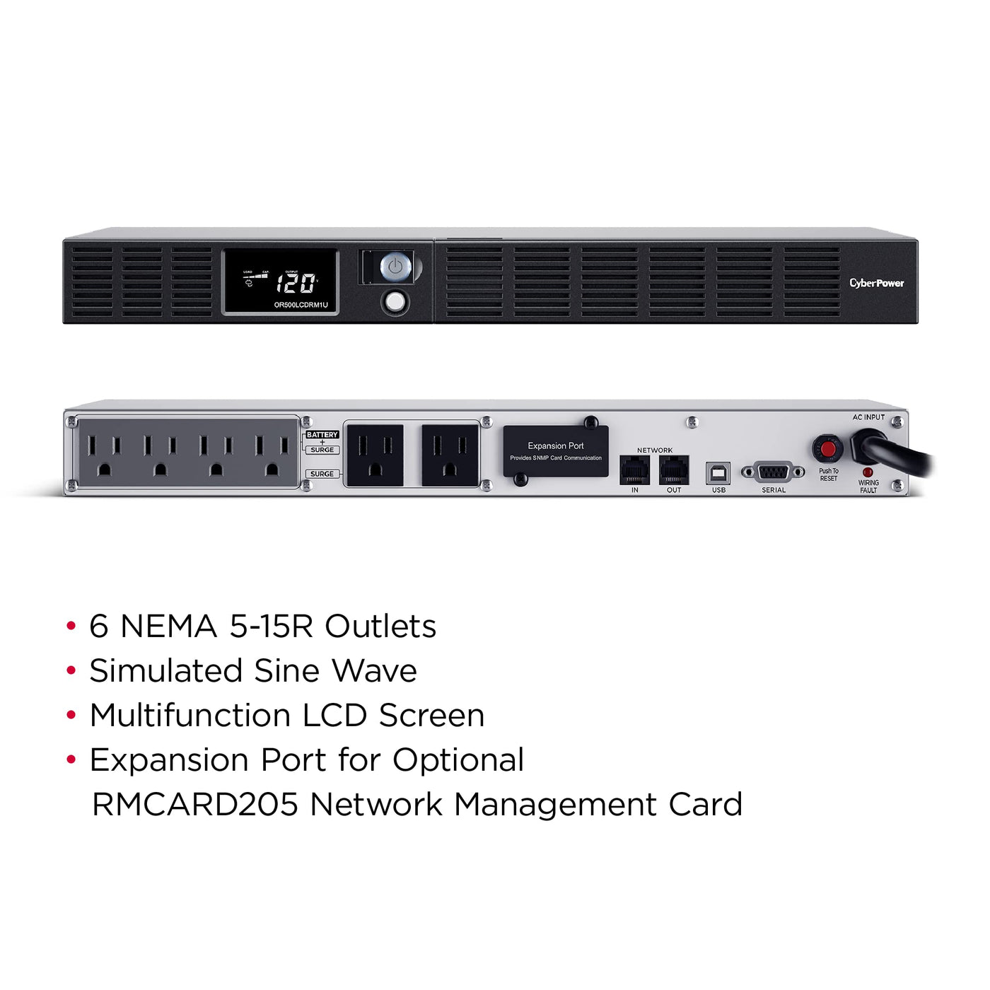A Rackmount Ups With Line Interactive Topology, The Cyberpower Smart App Lcd Or500Lcdrm1U Provides Battery Backup (Using Simulated Sine Wave Output) And Surge Protection For Department Servers, Workgroup Servers, Workstations, Network Devices, And Telecom Installations Without Active Pfc Power Supplies. The Or500Lcdrm1U Uses Automatic Voltage Regulation (Avr) To Correct Minor Power Fluctuations Without Switching To Battery Power, Which Extends Battery Life. Avr Is Essential In Areas Where Power Fluctuations Occur Frequently. The Or500Lcdrm1U Comes With A Three-Year Warranty And A $300,000 Connected Equipment Guarantee.