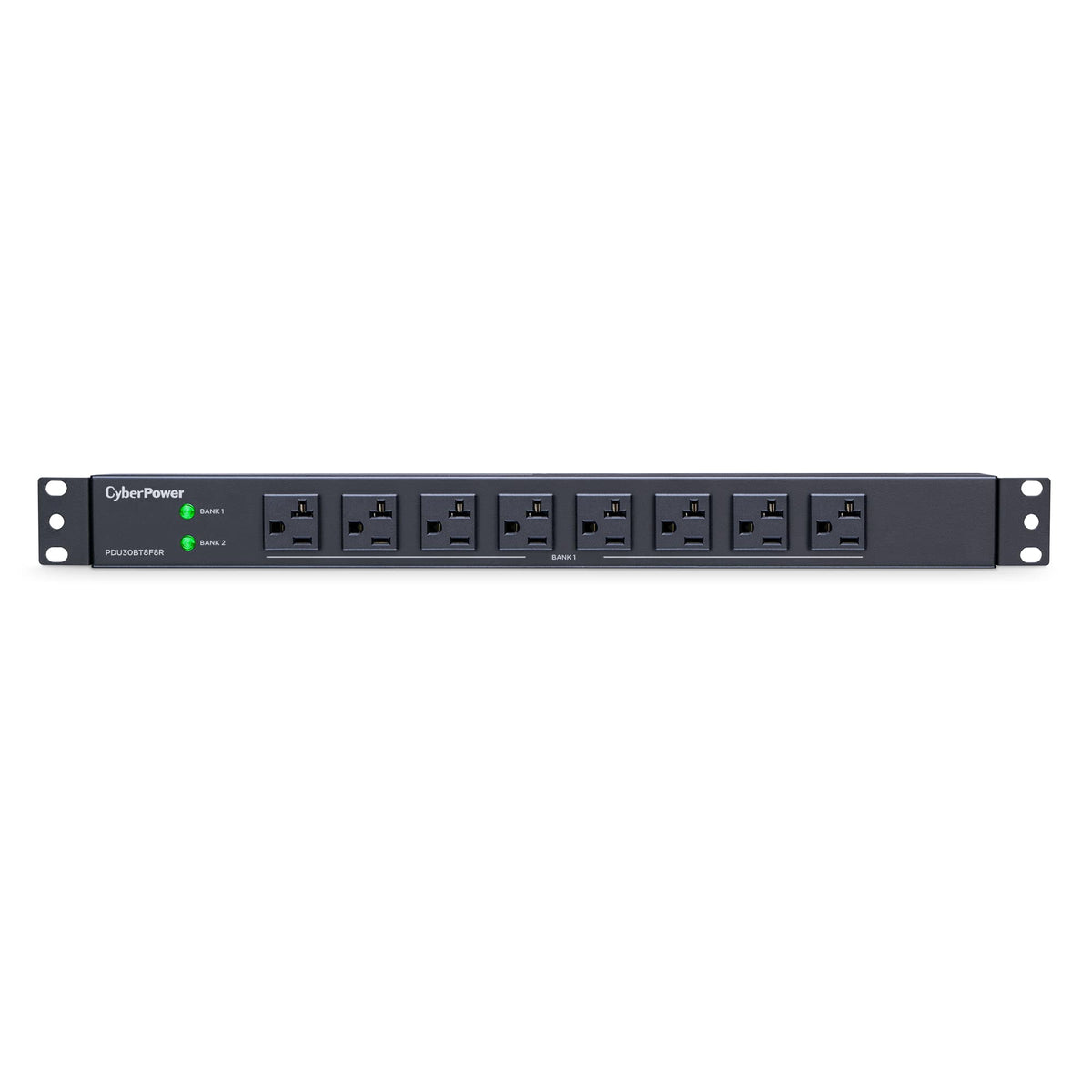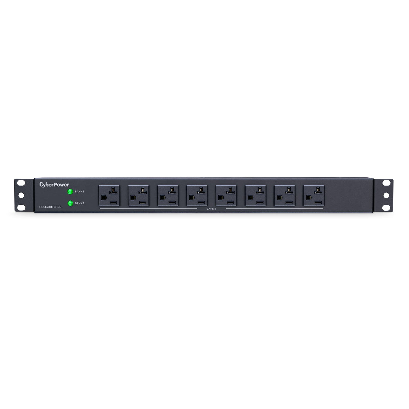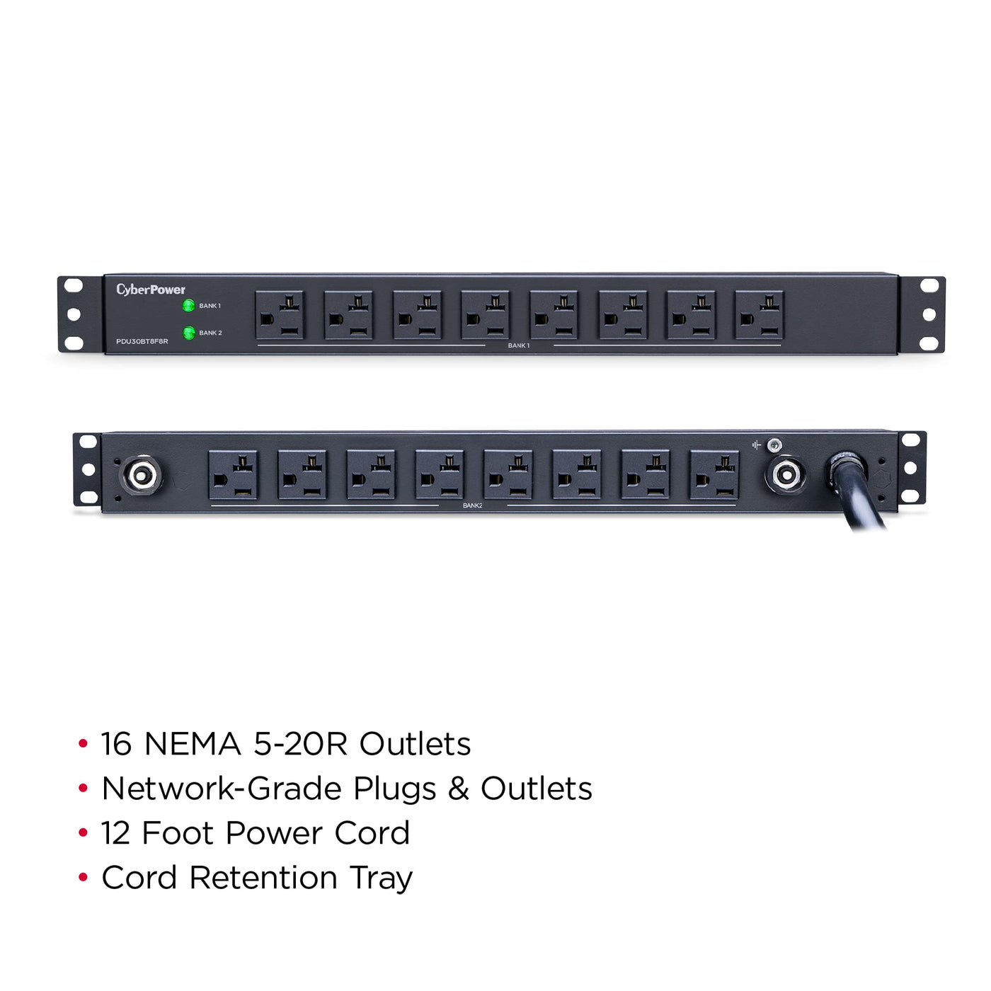 The Cyberpower 16-Outlet (8 Front/8 Rear) Rack Mount Basic Power Distribution Unit (Pdu30Bt8F8R) Provides 120V 30A Output. It Distributes Power To 16 Nema 5-20R Receptacles From A Single Nema L5-30P Twist Lock Plug, With Unfiltered Electrical Pass-Through. Designed For Datacenters And Other Electrically Demanding Applications, This Unit Has A Rugged, Industrial-Grade Metal Housing And A 12-Foot Ac Power Cord. It Can Be Mounted Either Horizontally Or Vertically, Includes A Cord Retention Tray And Is Etl/Rohs Certified. A Lifetime Warranty Ensures That This Pdu Is Free Of Defects In Design, Assembly, Material Or Workmanship.
