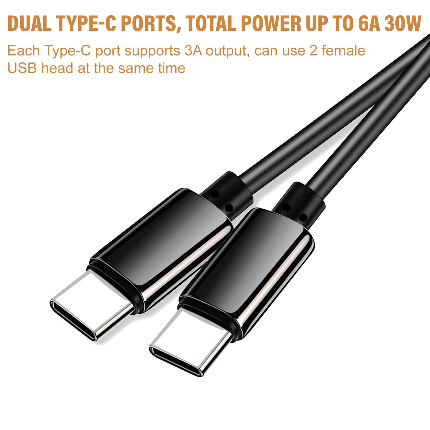 Q: Can this converter charge multiple devices at the same time?A: Yes, this converter can charge two devices simultaneously at full speed, with each Type-C port capable of delivering up to 3A and 15W max.