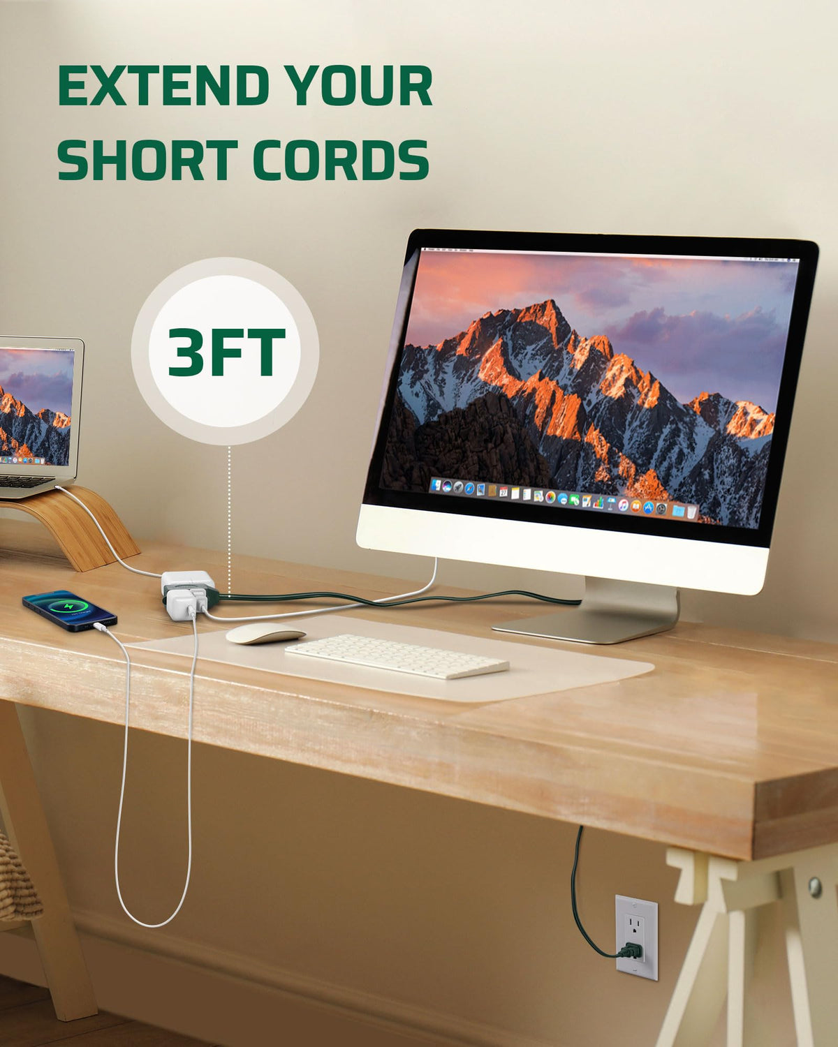 Dewenwils 3 Ft Extension Cord With 3-In-1 Outlet Need More Outlets And Power Cords? Try Our Extension Cord With A 3-Outlet! Add Extra Flexibility To Power Multiple Devices In Your Home Or Office. With A 3 Ft Length, Provides Flexibility And Reach. Twist-To-Lock Safety Covers, Keep The Secure, And Prevent Any Accidents. Say Goodbye To Tangled Cords And Welcome Convenience Into Your Life With Dewenwils!