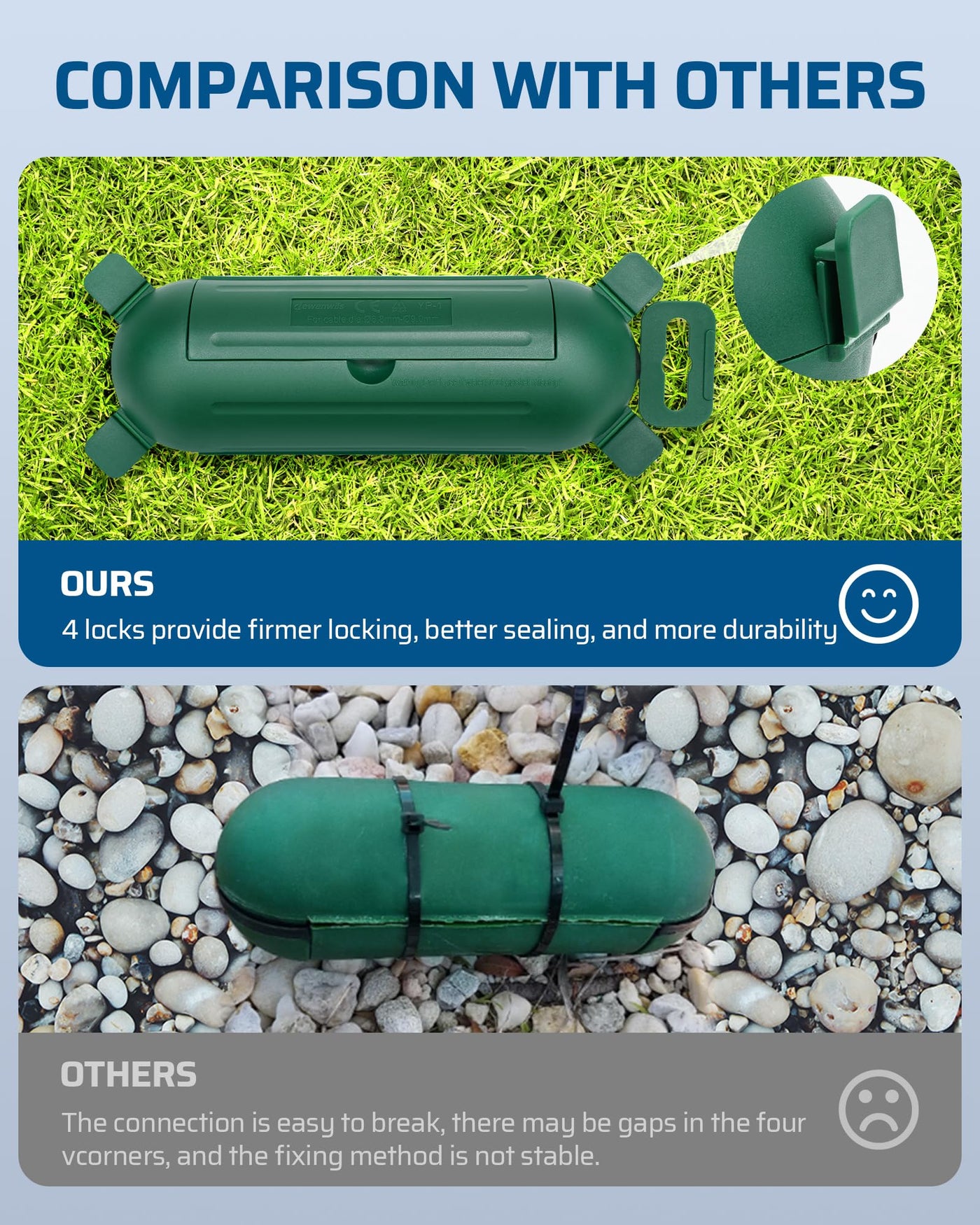 Dewenwils Extension Cord Safety Cover Protect You And Your Electrical Devices Seals Out Water, Snow, Rain, Dust, And Dirt, Keeps Cords Dry And Together. Ideal For Both Indoor And Outdoor Applications Like Holiday Decoration, String Lights, Water Fountain, Pool Pump, Garden Tools And Power Tools, Etc. Fits 12/14/16 Gauge Cords &Amp; Flat Cable Ample Compartment Holds Up To 12 Gauge Cords And Flat Cable. Adjust To Fit Multiple Connections And One On One Connections. Four Lockable Latches Lock The Weatherproof Cover In A Tighter Way With The Top Lid And 4 Extra Lockable Latches. Creates A Higher Degree Of Sealing By Double Lock Way. When Top Lid Is Broken Off, The Cord Safety Seal Cover Can Be Locked Tightly By These Latches For Safety Uses. Adjustable Limiter Slide To Adjust The Limiter For Different Lengths Of Connection. 2 Clamps At Both Ends Fix The Cord Tightly In Place. The Anti-Slip Serrations Keep The Cords Securely Connected To Prevent Plugs From Sliding Or Disconnecting In Pulling. Note: It Is Just Water-Resistant. Do Not Submerse It In Water. Specifications: Capacity:12/14/16 Gauge Cords &Amp; Flat Cable Dimension: 8.07 X 2.83 X2.83 Inch Available Colors: Green &Amp; Black Package Includes: 3 X Extension Cord Seal Seal 3 X Limiter 3 X Hanger 1 X User Manual
