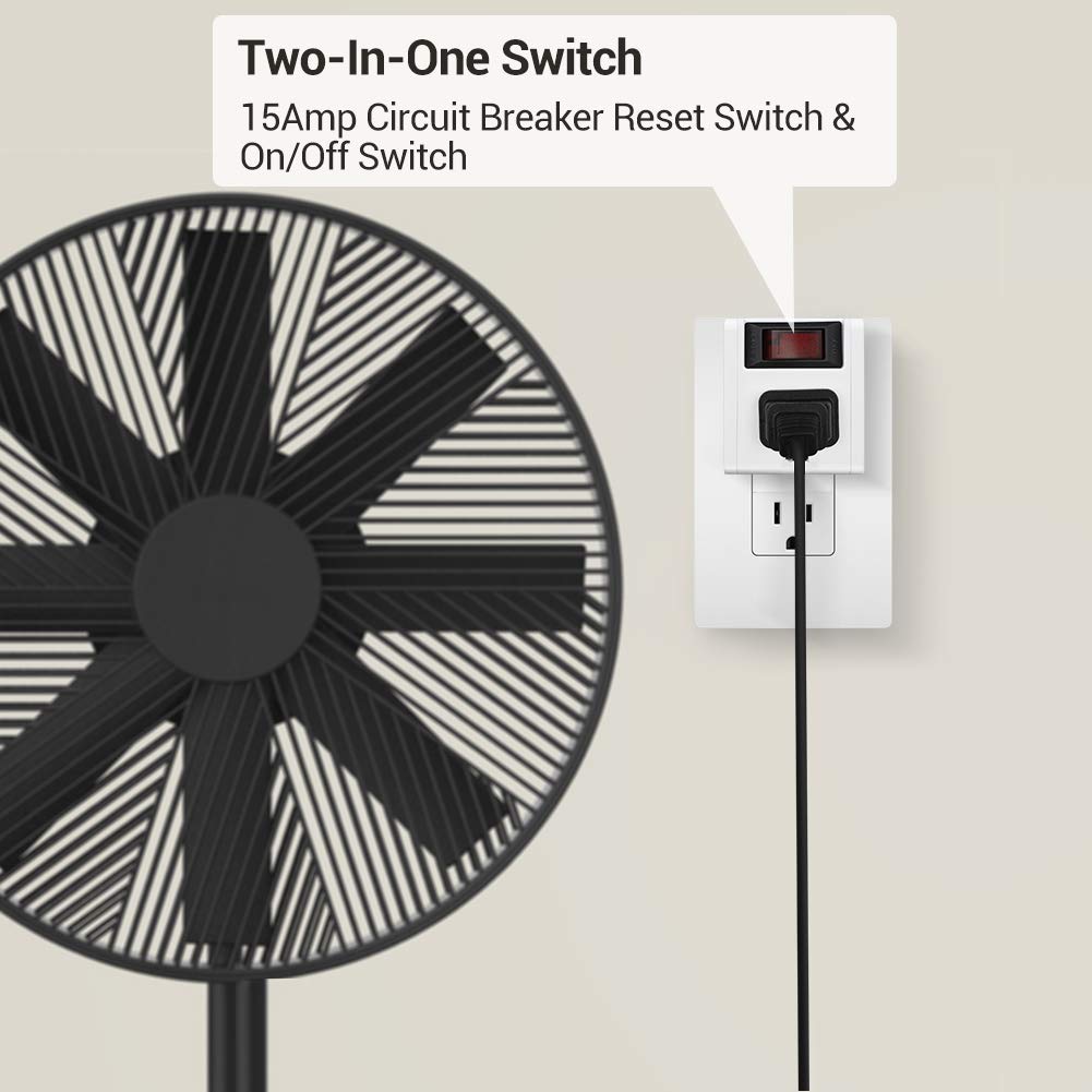Dewenwils Grounded Single Port Power Adapter With On/Off Switch, 3Prong Electrical Plug Outlet Switch, 15A Circuit Breaker, 280J