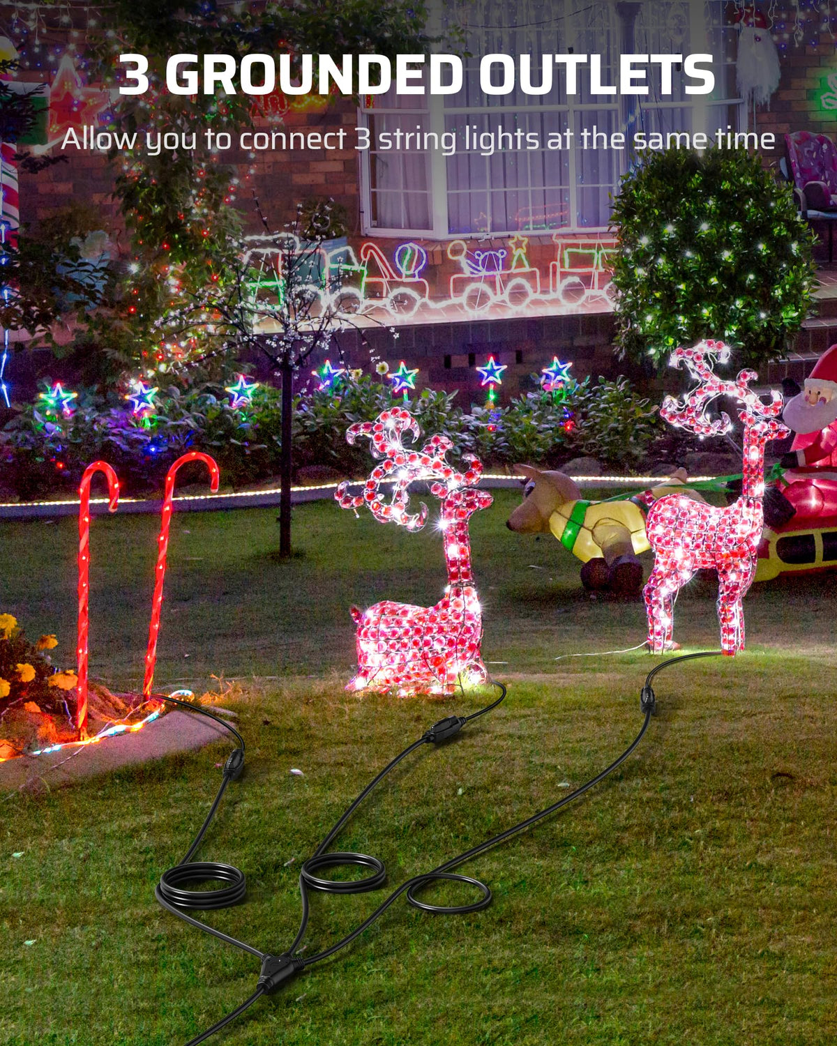 Dewenwils Outdoor Extension Cord 1 To 3 Splitter For Outdoor String Lights, 3 Prong Outlets Plugs, Max 13Ft End To End (25 Ft To
