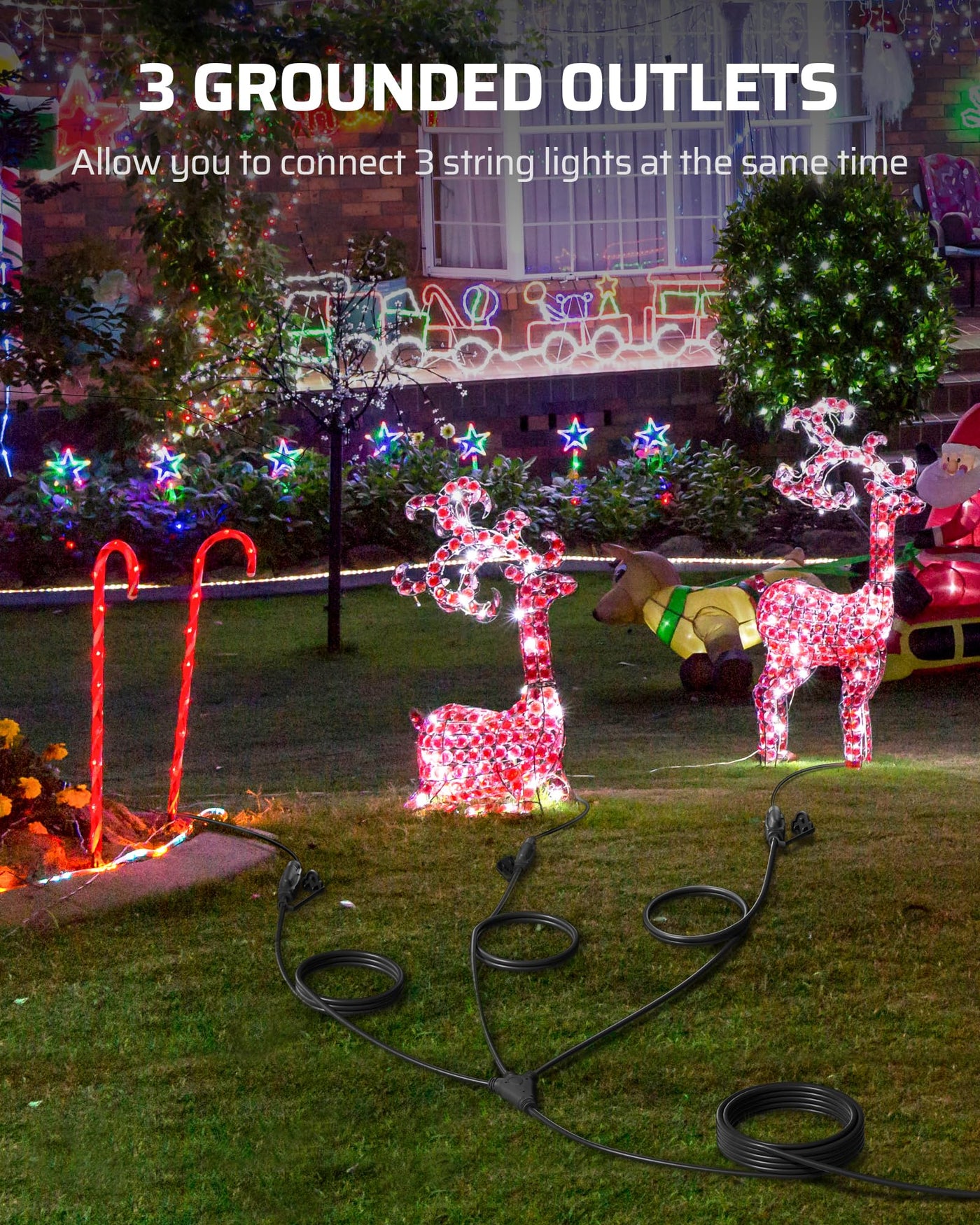 Q: Can I connect multiple devices to the DEWENWILS Outdoor Extension Cord simultaneously?A: Yes, the tri-tap design of the DEWENWILS Outdoor Extension Cord allows you to connect up to three devices at once, making it ideal for holiday decorations, outdoor lighting, and other electrical appliances.
