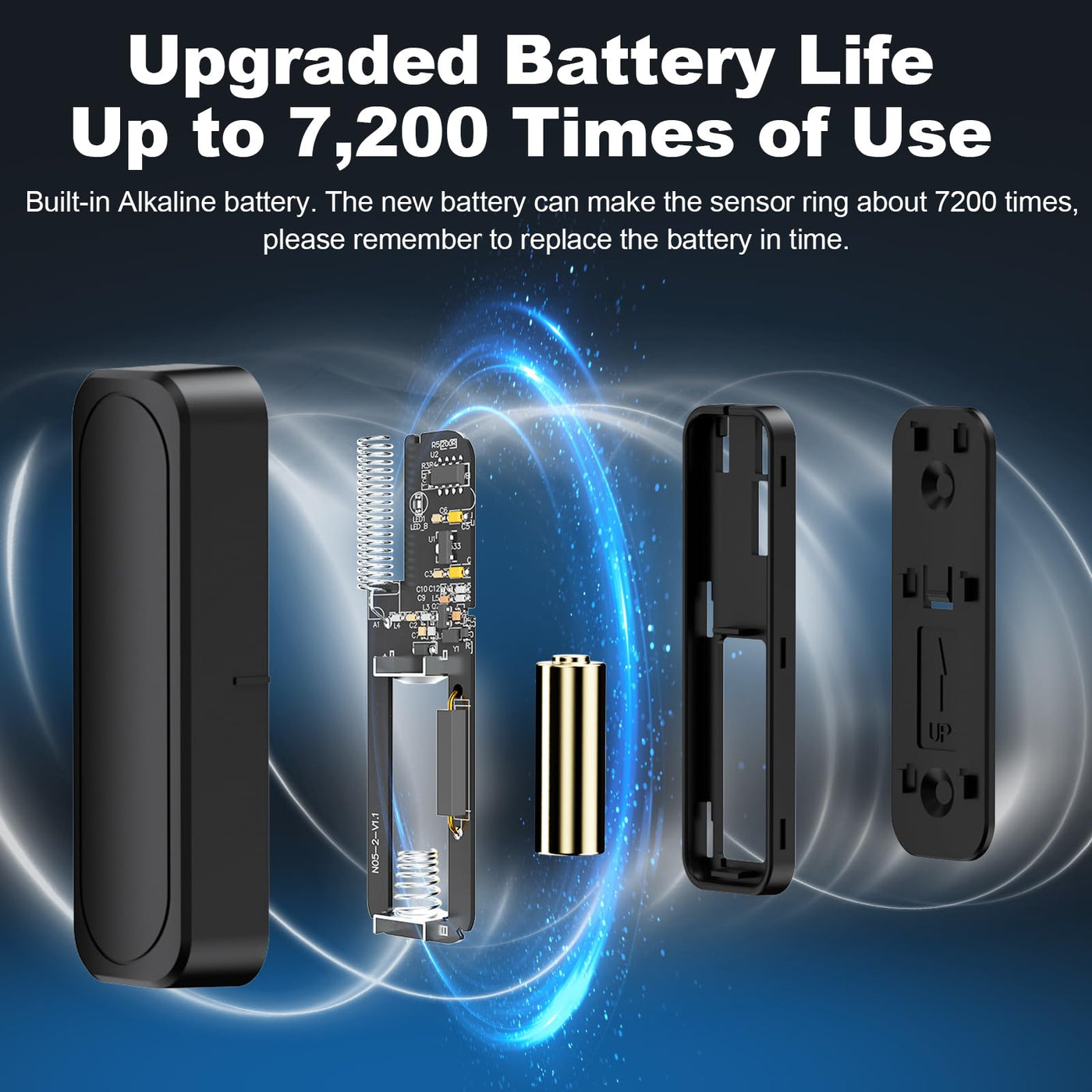 Bistee Wireless Door Chime Door Open Chime Window Alarm Operate Range 600Ft With 58 Chimes 5 Volume Level, 3 Door Sensor+2 Plug-In Receiver Wireless Door Magnet Sensor Open Chime Easily Installed Plugin And Play How To Change The Ringtone Step 1:Press The '''' Music '''' Button On The Receiver To Choose Your Favorite Melody. Step 2:Press And Hold Down The Volume Button ,Until It Makes A ''''Ding'''' Sound And The Receiver Indicator Flashes. Step 3:Separate The Sensor Quickly,It Will Makes A ''''Ding-Ding'''' Sound And The Receiver Indicator Flashes. Step 4:Separate The Sensor Again To Confirm Whether The Current Ringtone Is The One You Have Set,If Yes,The Pairing Is Completed. If The Door Chimes Can Not Work When You Received It,Please Re-Pair It. Parameters Of Door Sensor: Wireless Transmitting Distance: = 80M (In Open Area) Operating Voltage: 3V Dc Operating Current: 3Ua(Standby), 15Ma(Transmitting) Installation Gap: = 1Cm Working Temperature: -15 ? ~ 60 ? Working Humidity: = 85% Note: 1. For Multi-Transmitters: Repeat Step To Register Another Transmitters To This Receiver. Thus All Of Transmitters Have Been Registered To This Receiver And Trigger Different Tune. 2. For Multi-Receivers: Please Set Receiver One By One, To Register Each Transmitter To Each Receiver. 3. Can Not Install Transmitter On The Metal, Because Built-In Antenna Can Not Close To Metal. 4. Hold Music Button Over 3-5 Seconds, It Will Trigger Clean Pairing Function 5.The Battery Level Will Affect The Signal Receiving Range. It Is Recommended To Change It Once Every 6 Monthsps: 1. Do Not Install The Transmitter On A Metal Object, Because Metal Will Affect The Signal Transmission Of The Product.2. Most Product Problems Can Be Effectively Solved After Re-Matching Product Information (Please Contact Customer Service For Specific Steps)