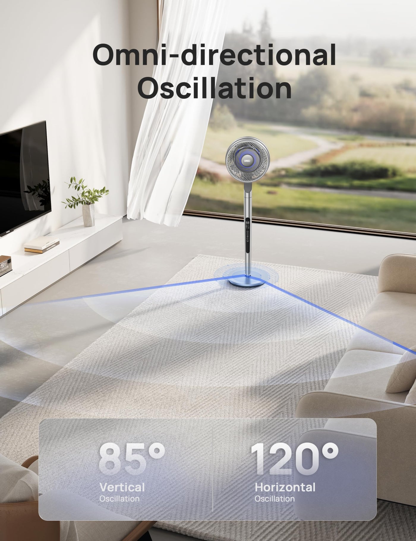 Q: Is the Dreo Smart Fan suitable for large rooms?A: Absolutely! The fan is designed to circulate fresh air effectively throughout larger spaces, reaching speeds of up to 21ft/s and covering an area of up to 100ft, making it ideal for bedrooms, living rooms, or offices.