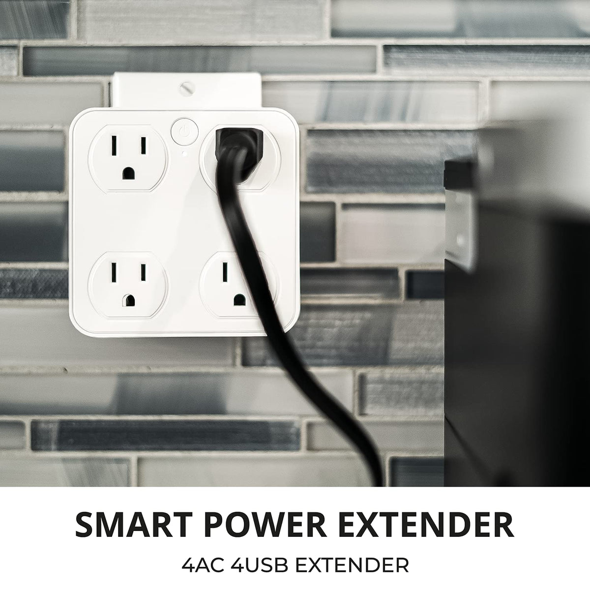 Eco4Life Wireless Wall Tap Smart Plug,Surge Protector, 4 Outlet Extender With 4 Usb Charging Ports, Compatible With Alexa Google