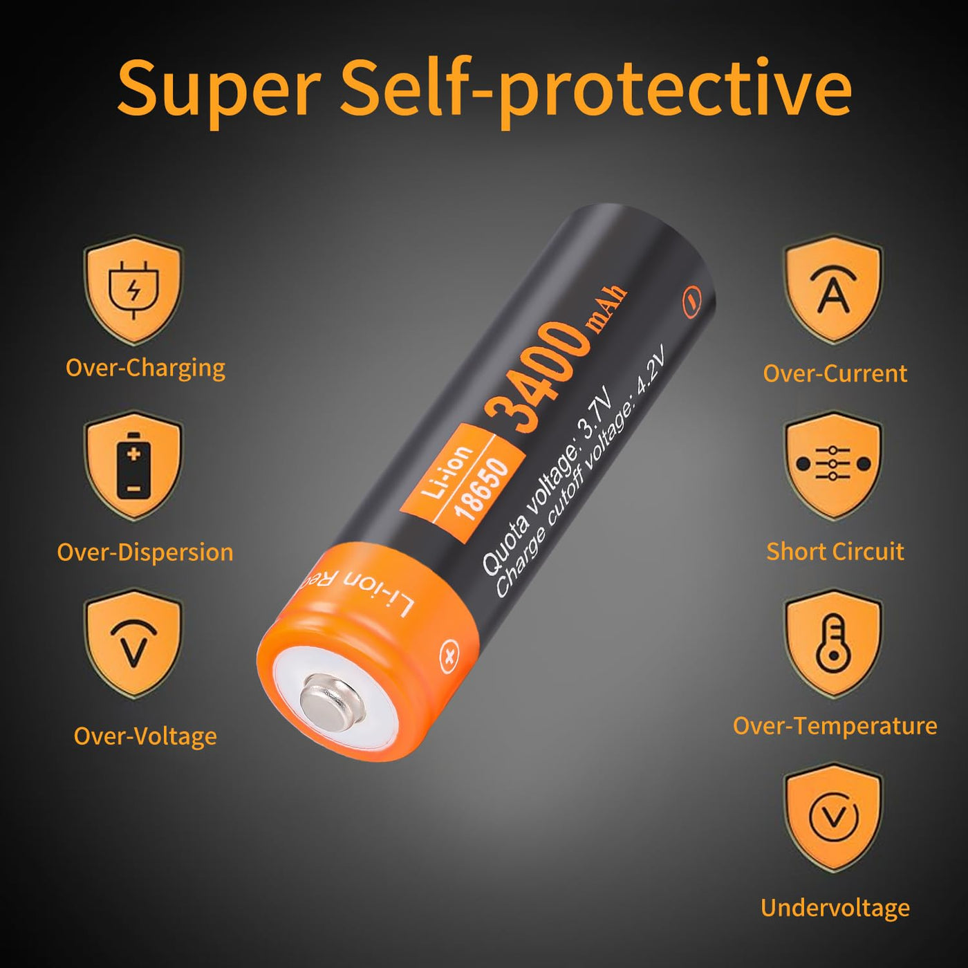 Ecosolutions 18650 Rechargeable Battery (Button Top) 3.7V 3400Mah Large Capacity Batteries For Led Flashlight, Headlamp, Doorbel
