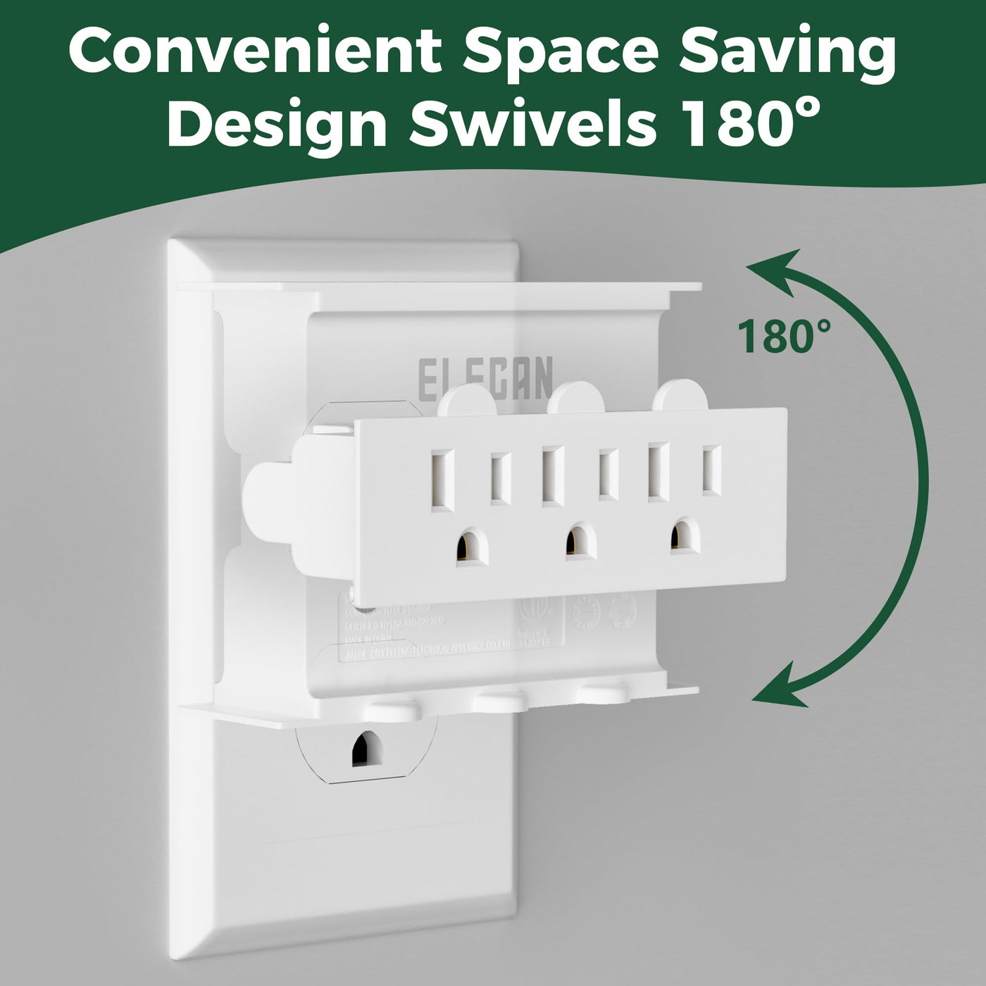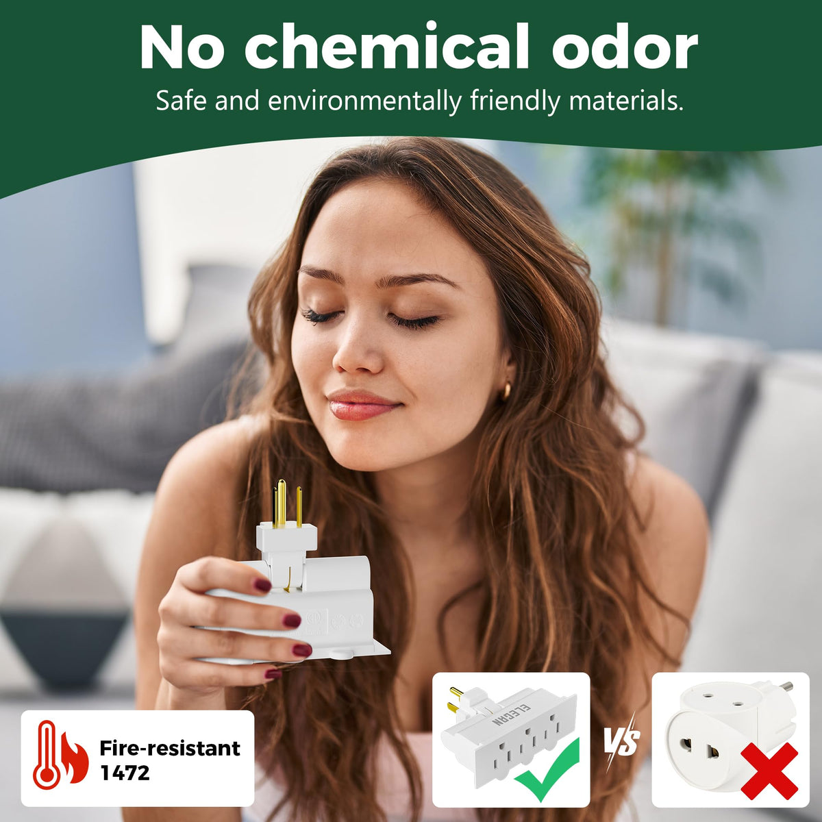 Elecan 180-Degree Rotatable Extender 180-Degree Rotatable Plug Design Allows You To Easily Use It In Narrow Spaces Made From Safe And Eco-Friendly Plastic With No Unpleasant Chemical Odors Remains Cool To The Touch Even After Prolonged Use, Eliminating The Risk Of Fire Etl Certified, 15A, 125V, And 1875W Effectively Converts A Single Outlet Into Three Grounded Outlets Perfect For Use In Living Rooms, Bedrooms, Kitchens, Offices, Cruises, And Hotels, Making It Ideal For Use In The U.S., Safely And Conveniently Meeting Your Electronic Needs.