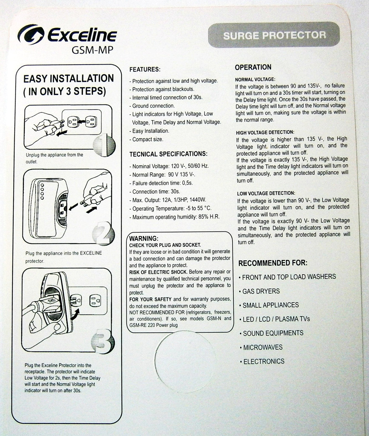 Electronic Surge Protector For Front And Top Load Washers, Gas Dryers, Led, Lcd And Plasma Tv'S