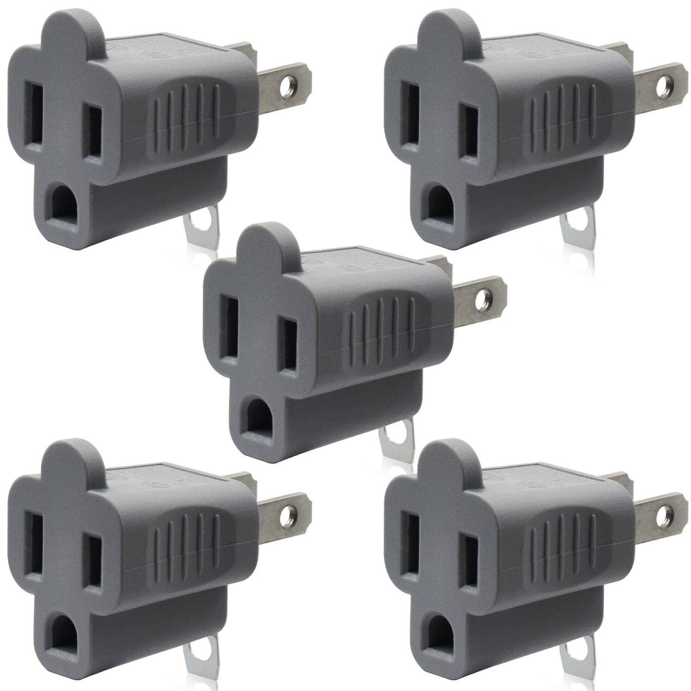 Elegrp 2 To 3 Prong Grounding Adapter Outlet, 2-Prong To 3-Prong Adapter Converters For Wall Outlets Plugs, Portable Polarized Outlet Extender For Household Appliances, Etl Listed, 5 Packs, Gray