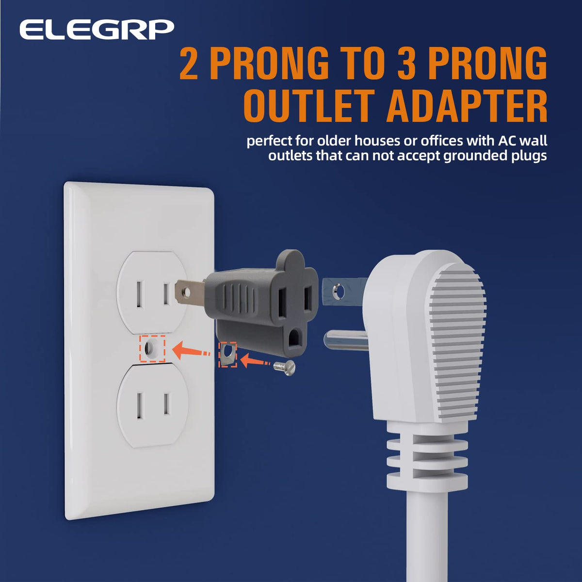 Q: What is the purpose of the ELEGRP 2 to 3 Prong Outlet Adapter?A: The ELEGRP 2 to 3 Prong Outlet Adapter is designed to convert a 2-prong outlet into a 3-prong outlet, providing grounding protection for appliances in older homes or offices that do not accept grounded plugs.