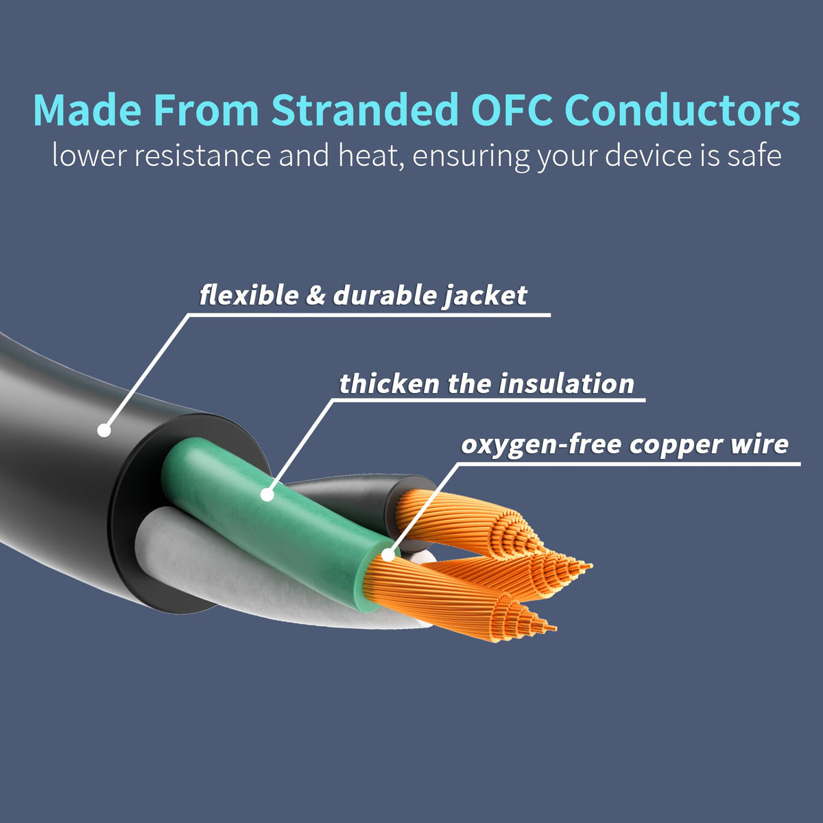 Q: What materials are used in the construction of the Energeaster extension cord?A: The Energeaster extension cord is made of high-quality copper for the wire core and features a durable vinyl outer layer, ensuring flexibility and resistance to wear and tear.