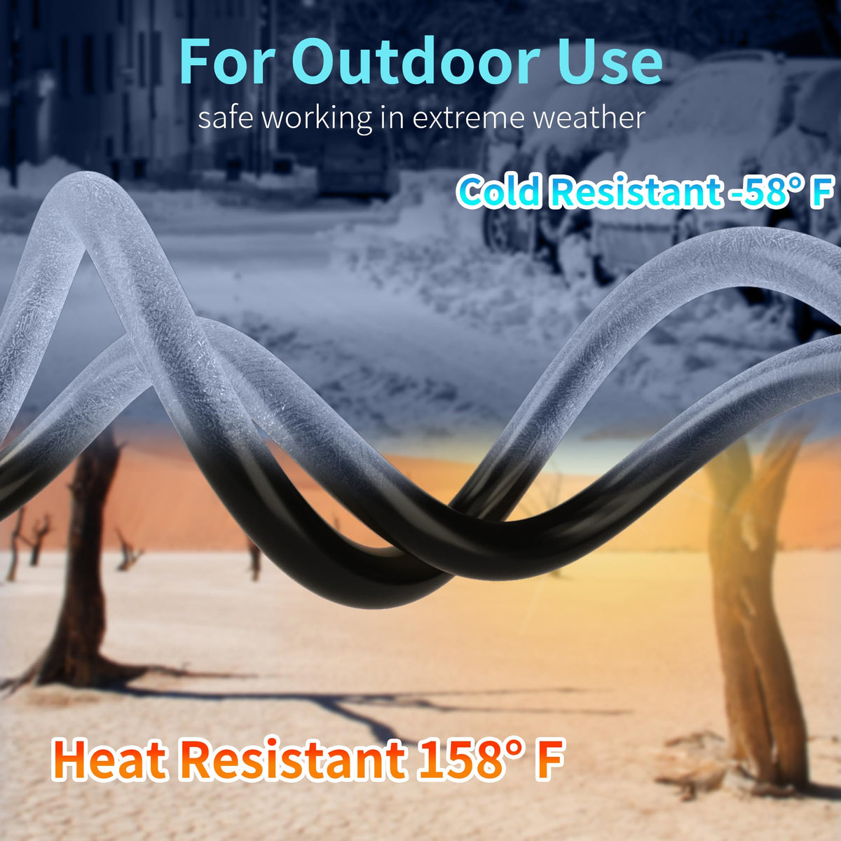 Specifications: 25 Ft 3 Outlet Black Extension Cord With Multiple Outlets, 16 Gauge, 13 Amp, 125 Volts, 1625Watts, Male Plug Nema 5-15P, Female Plug Nema 5-15R, Sjtw Cord; Etl Cetl Listed Indoor Outdoor Extension Cord 25 Ft Waterproof 3 Outlets One Sided: Black Outdoor Extension Cord Female Outlet With Three Sockets For Plugging In 3 Devices Or Appliances; 25 Ft Extension Cord 3 Outlets Equivalent A Mini Power Outlet With A Long Cord; 25 Foot Electrical Cord Can Leaned Against The Wall Or On The Floor; Used In Places Where Multiple Outlets Needed, Such As Under A Desk, Bedroom, Kitchen, Office Or Other Outdoor Appliance Hook & Strain Relief Design: Outdoor Extension Cord Waterproof Plug And Socket End Have Extended Strain Relief Design, Over 20,000 Bend Tests No Breaks. Hooks And Nail Holes Are Designed At The End Of The Socket, Easy To Hang Or Fix The Socket, Hooks Can Be Applied To A Variety Of Situations Of Hanging, Head Of The Hooks Has A Blocking Design, Which Prevents The Hanging Process From Falling Off Flexible & Weatherproof: Multi Outlet Extension Cord 25 Is Made By Vinyl, Keep Flexible Below -58F; You Can Easily Recycle And Pack It Away Even After A Cold Winter'S Day; Indoor Extension Cord With Multiple Outlets Outdoor Pvc Jacket Is Wear-Resistant And Durable, Black Extension Cable Is Ip65, Which Can Be Waterproof, Heat-Resistant (158F), Cold-Resistant, Wind-Resistant, Abrasion-Resistant And Flame-Retardant Quality Assurance: Outdoor Electrical Cord Core Of The Wires Is Made Of Copper Material, And Each Cord Is High Voltage Tested At 1500V Pass All The Necessary Safety Standards To Keep Your Appliances Safe To Use