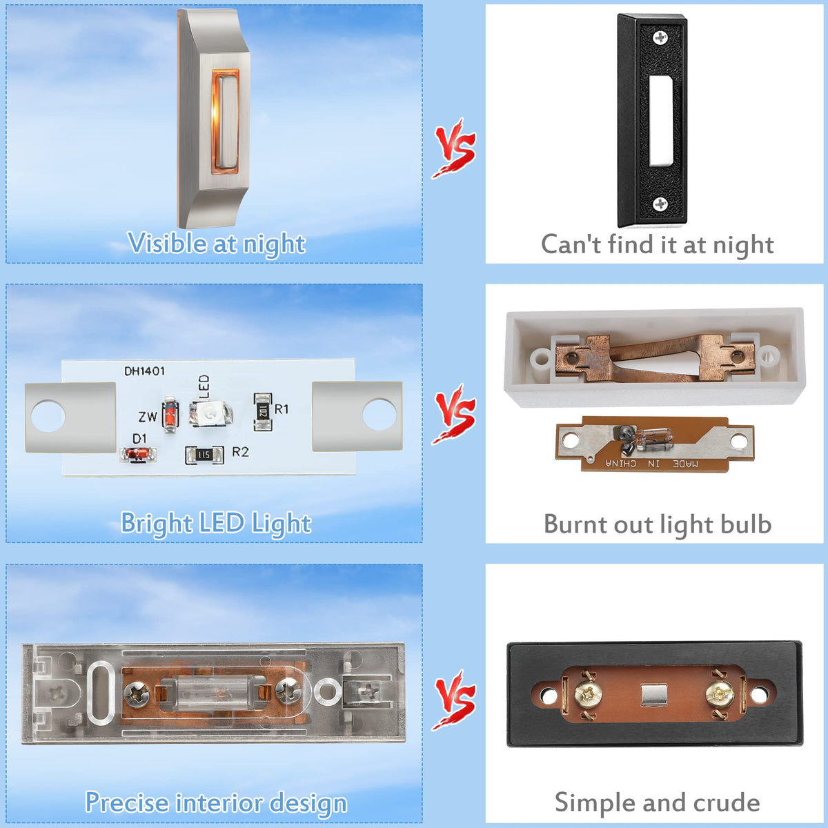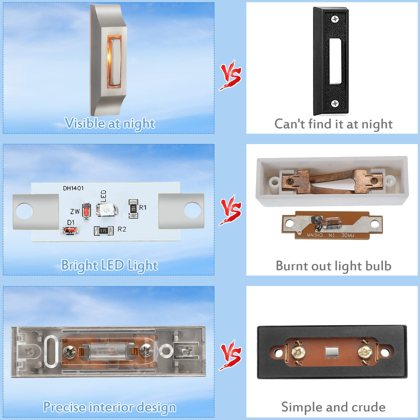 Enhon 2 Pack Metal Doorbell Push Button, Heavy Duty Metal Door Bell Button, Garage Doorbell With Warm Led Light Compatible With
