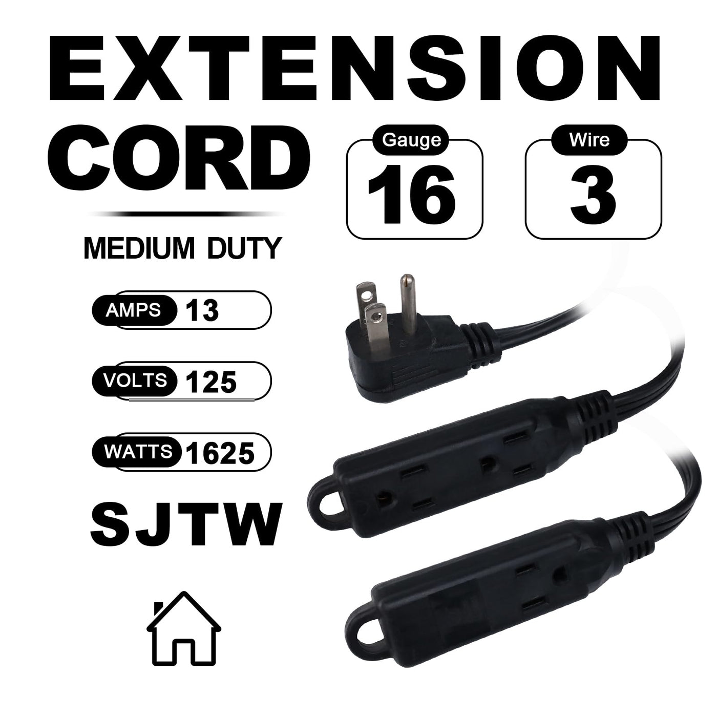 Ul Listed - 3 Wire Grounded Extension Cord, 16/3 Sjtw, 13A, 125V, 1625W. Temperature Range: -40