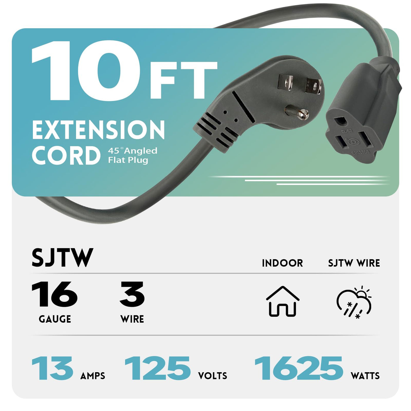 Q: What is the maximum wattage this extension cord can handle?A: The EP 10 Ft Flat Plug Extension Cord can handle up to 1625 watts, making it suitable for various household appliances.