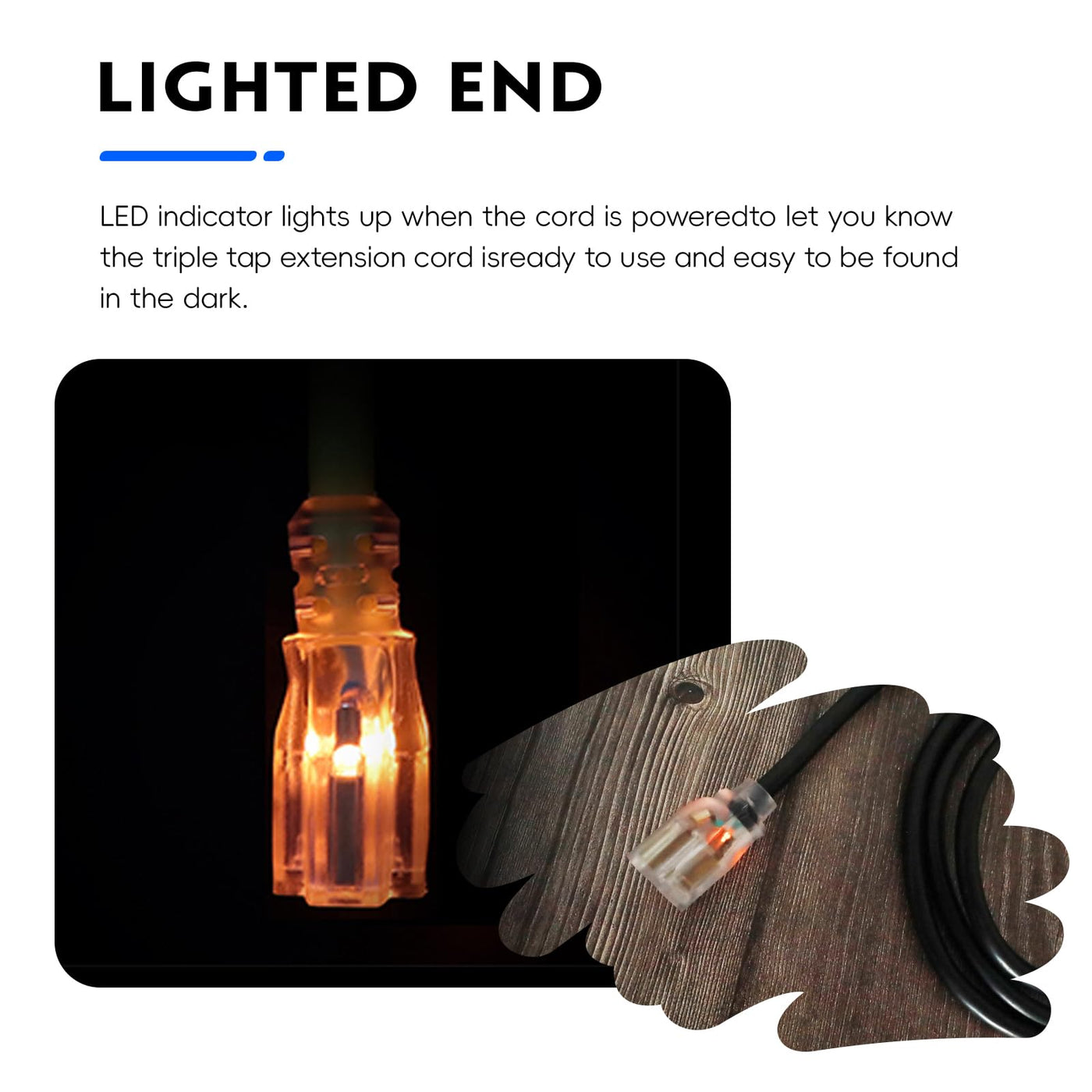 Q: How can I tell if the extension cord is powered on?A: The EP 10Ft Extension Cord includes a lighted indicator at the end, which lights up when the cord is powered, allowing you to easily see its status.