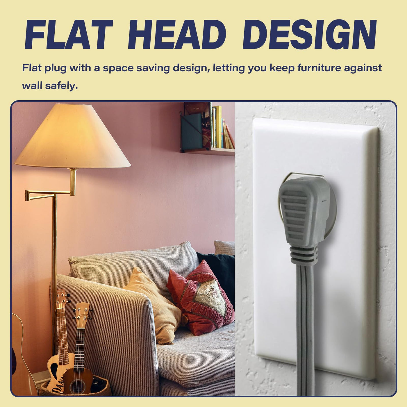 Q: How does the flat plug design benefit me?A: The flat plug design allows you to position furniture against the wall without obstruction, maximizing space and making it more convenient for room arrangements.