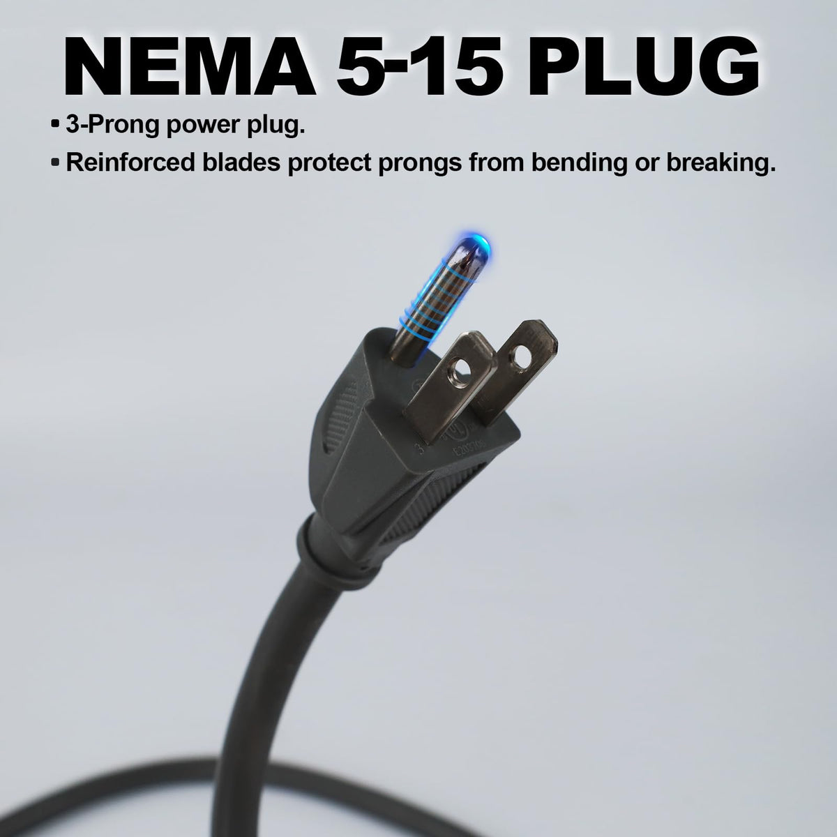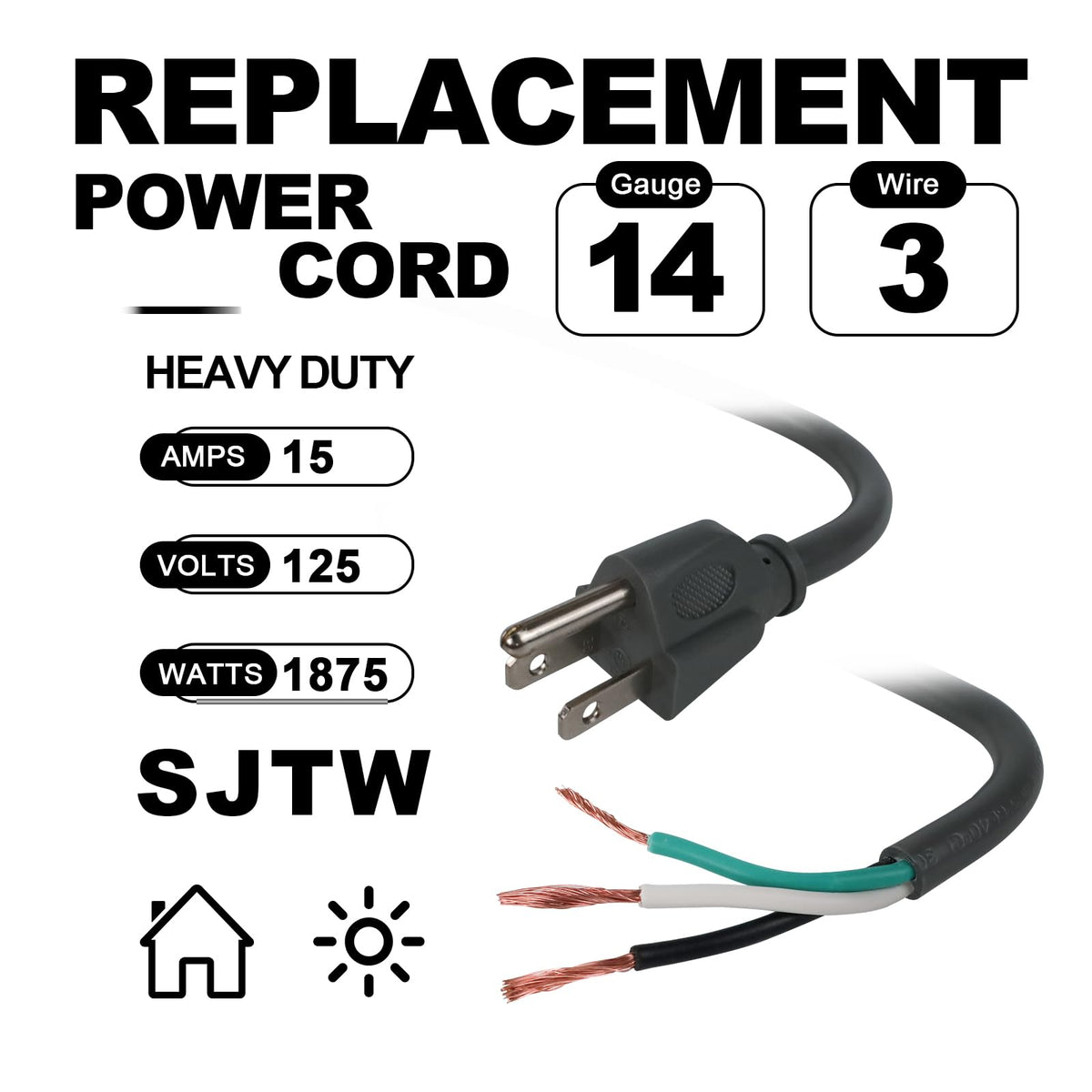 Replacement Power Cord - 14-Awg, 3-Wires, Sjtw, 15 Amp, 125V, 1875 Watts Max Applications. | Pigtail End - 14/3 Replacement Power Cord Nema 5-15P Male To Bare End ( One End ), Which Has Open Wiring On The Other End. | Safe Cable - Ul Listed, Insulation Stripped For Easy Connection And Installation.3 Prong Grounded Plug For Added Safety. Professional, Safe, Heavy Duty And Reliable. | Indoor / Outdoor Power Cord - Temperature Range: -40