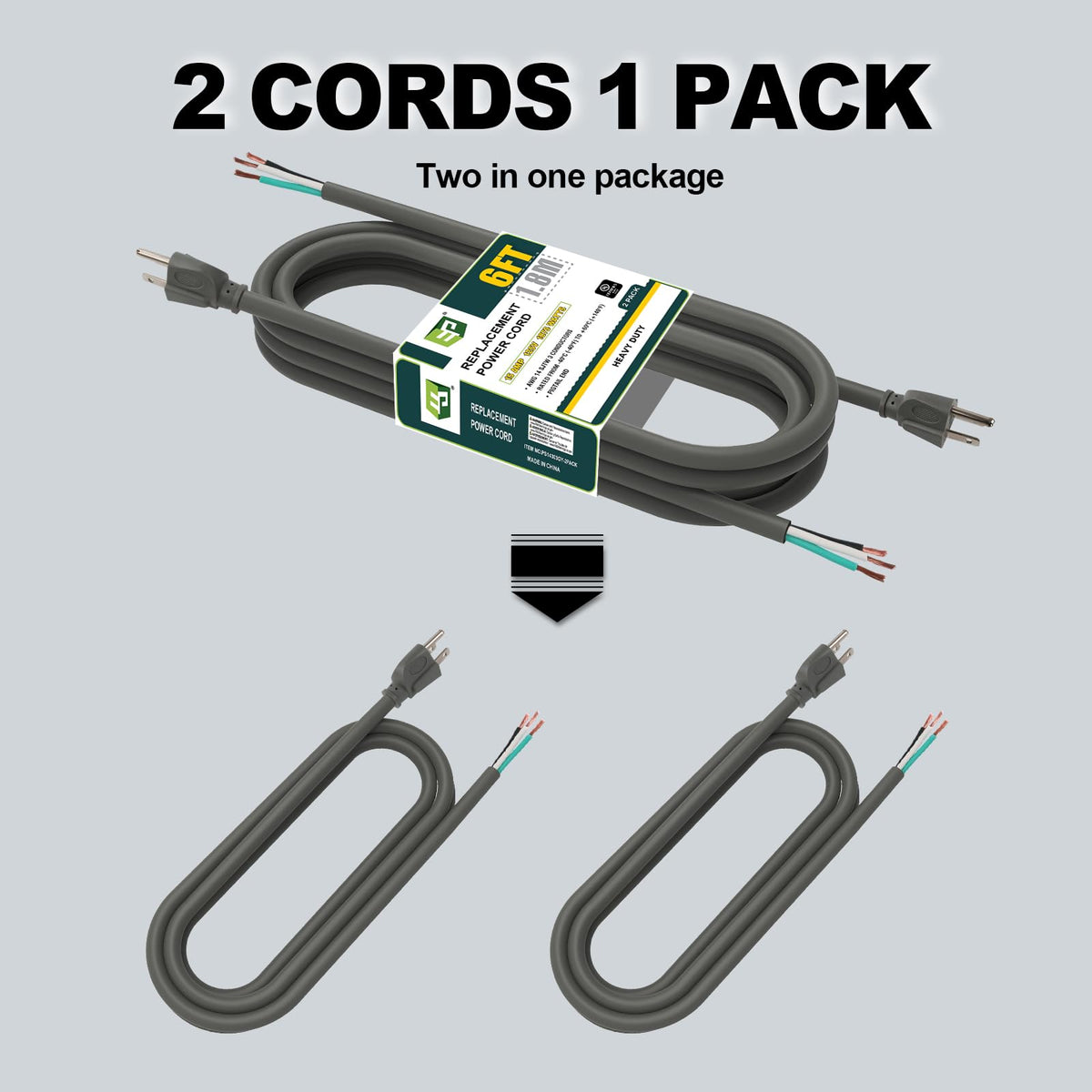 Ep 2 Pack 6 Ft 14/3C Sjtw Appliance And Power Tool Cord, 14 Gauge 3 Prong Heavy Duty Replacement Power Supply Cord Cable, 110V 1