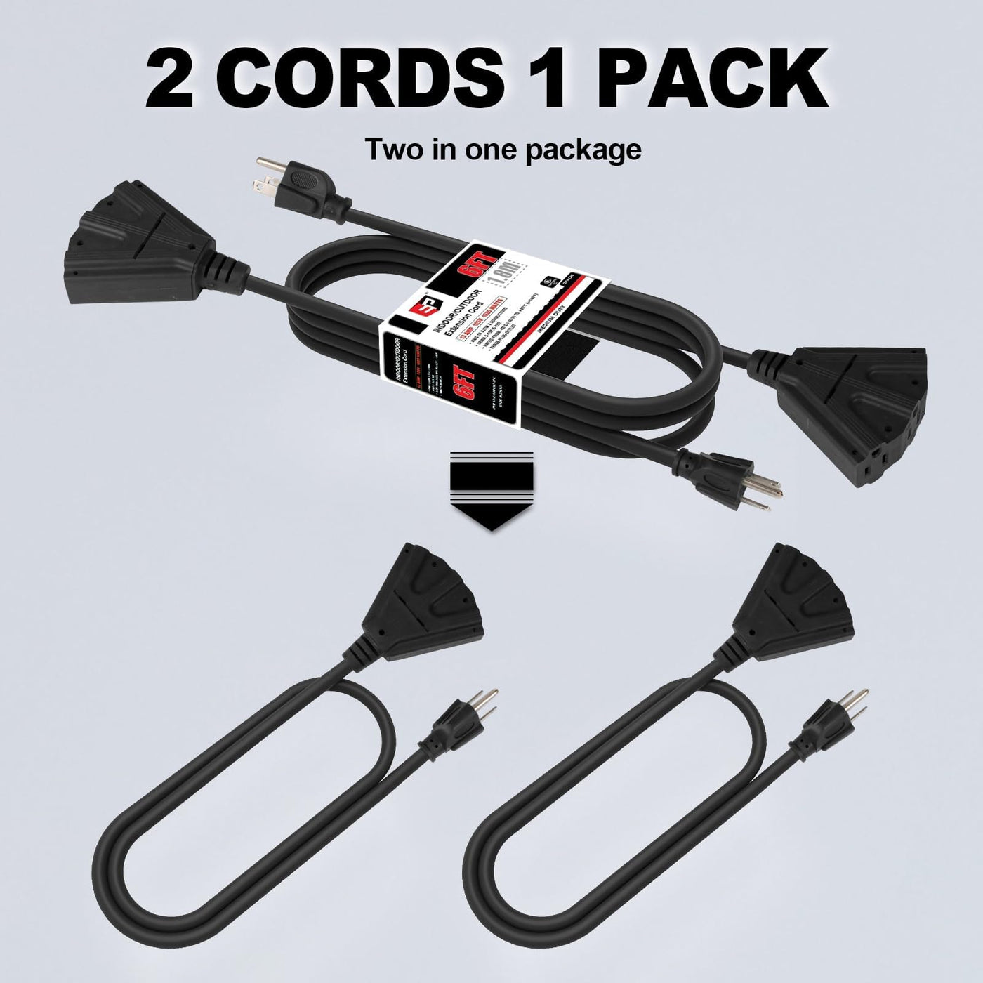 Q: What is the maximum wattage this extension cord can handle?A: The EP 2 Pack 6 Ft Outdoor Extension Cord can handle up to 1625 watts, making it suitable for various household appliances and power tools.