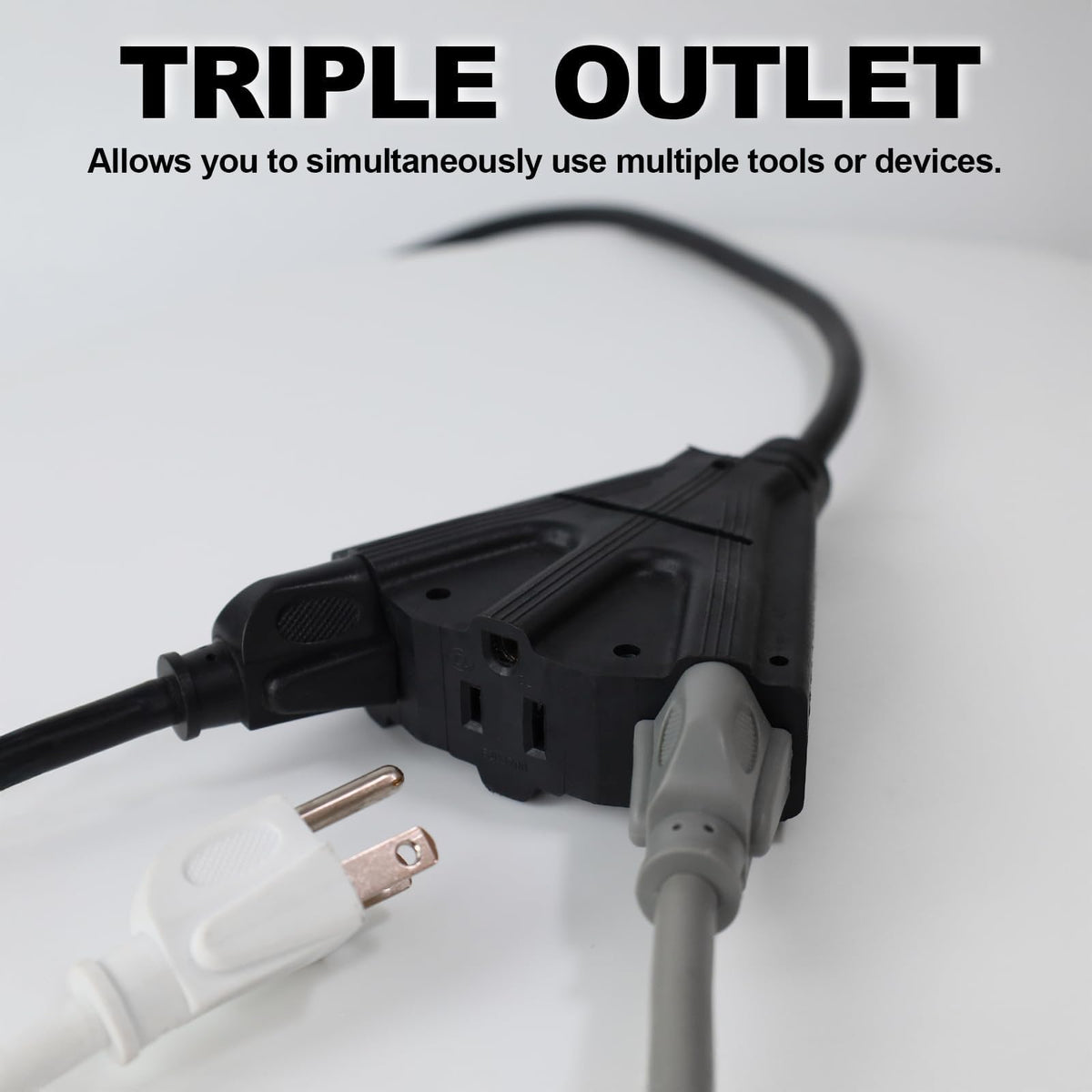 Q: How does the 3 in 1 outlet feature work?A: The 3 in 1 outlet feature allows you to plug in and use three devices at once, making it convenient for powering multiple tools or appliances simultaneously.