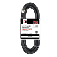 Ep 25 Ft Outdoor Extension Cord 12/3 Sjtw Heavy Duty Black Extension Cable With 3 Prong Grounded Plug Power Cord For Lawn, G