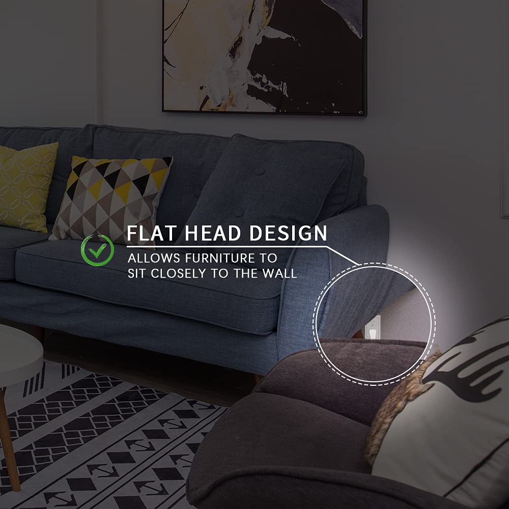 Q: How does the flat plug design benefit furniture placement?A: The flat plug design allows you to place furniture flush against the wall, saving space and preventing damage to both the cord and your furniture.