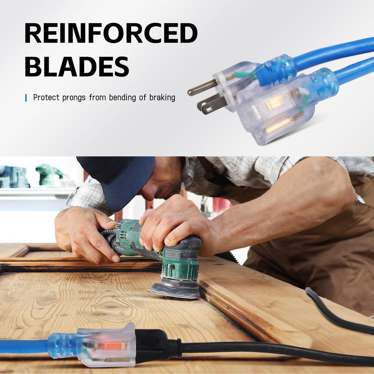 Q: Is this extension cord suitable for outdoor use?A: Yes, this extension cord is designed for both indoor and outdoor use. It features a weather-resistant vinyl jacket that protects against moisture, UV exposure, and extreme temperatures ranging from -40°F to +140°F.