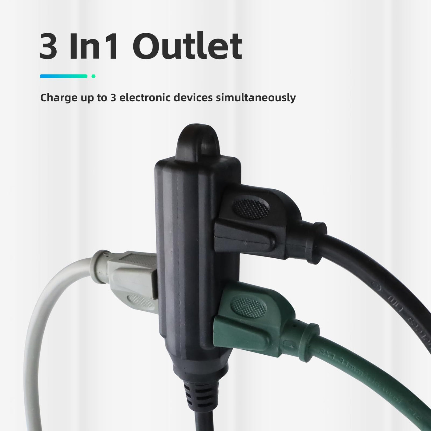 Q: How many devices can I connect to this extension cord?A: This 3 FT flat plug extension cord features 3 outlets, allowing you to connect multiple devices simultaneously. It's perfect for powering several household items like lamps, chargers, and fans at once.