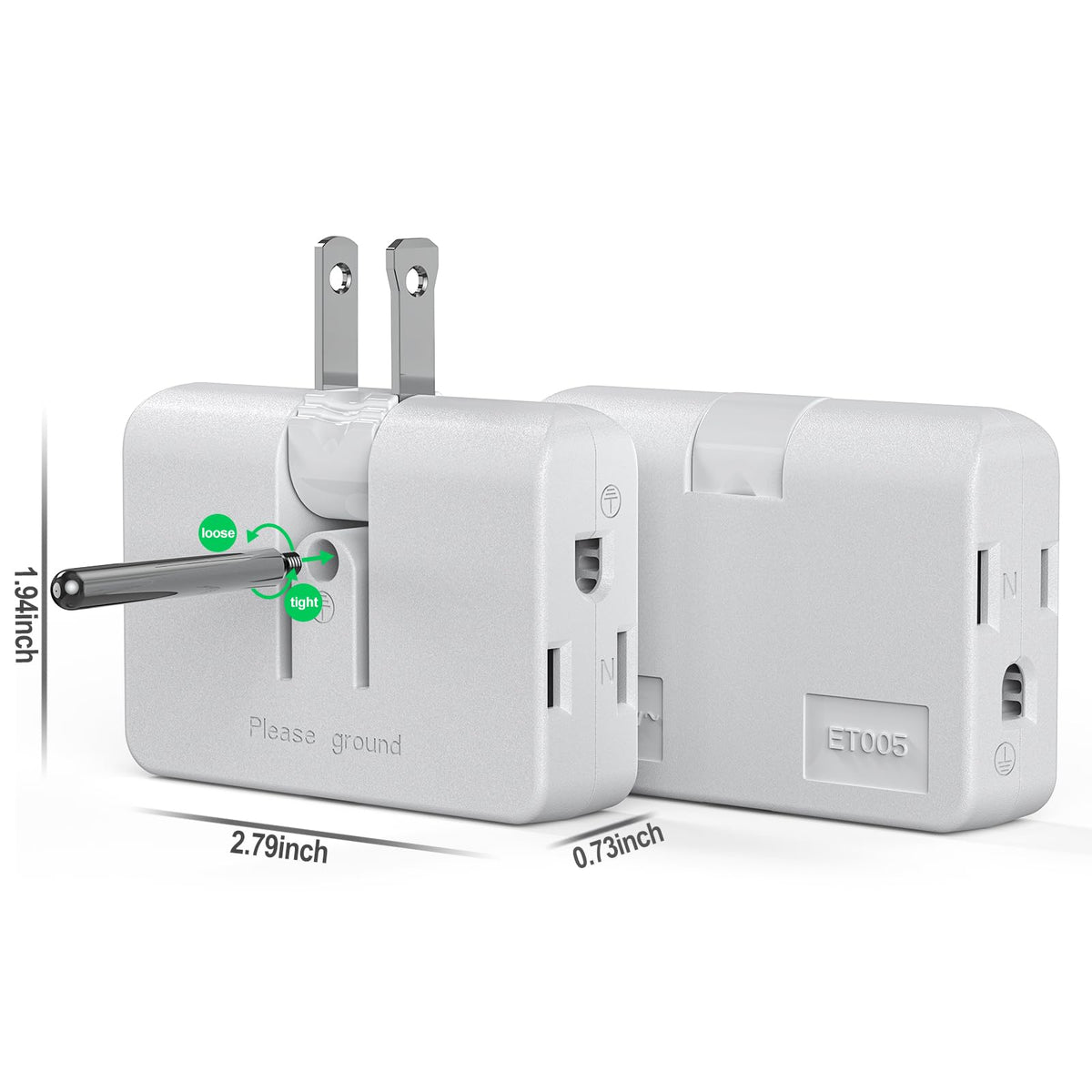 Q: How does the grounding feature work on the ETwinCoo adapter?A: The grounding feature of the ETwinCoo adapter includes a grounding pin that helps to prevent electrical shorts and power surges, ensuring safe usage even with heavy plugs.