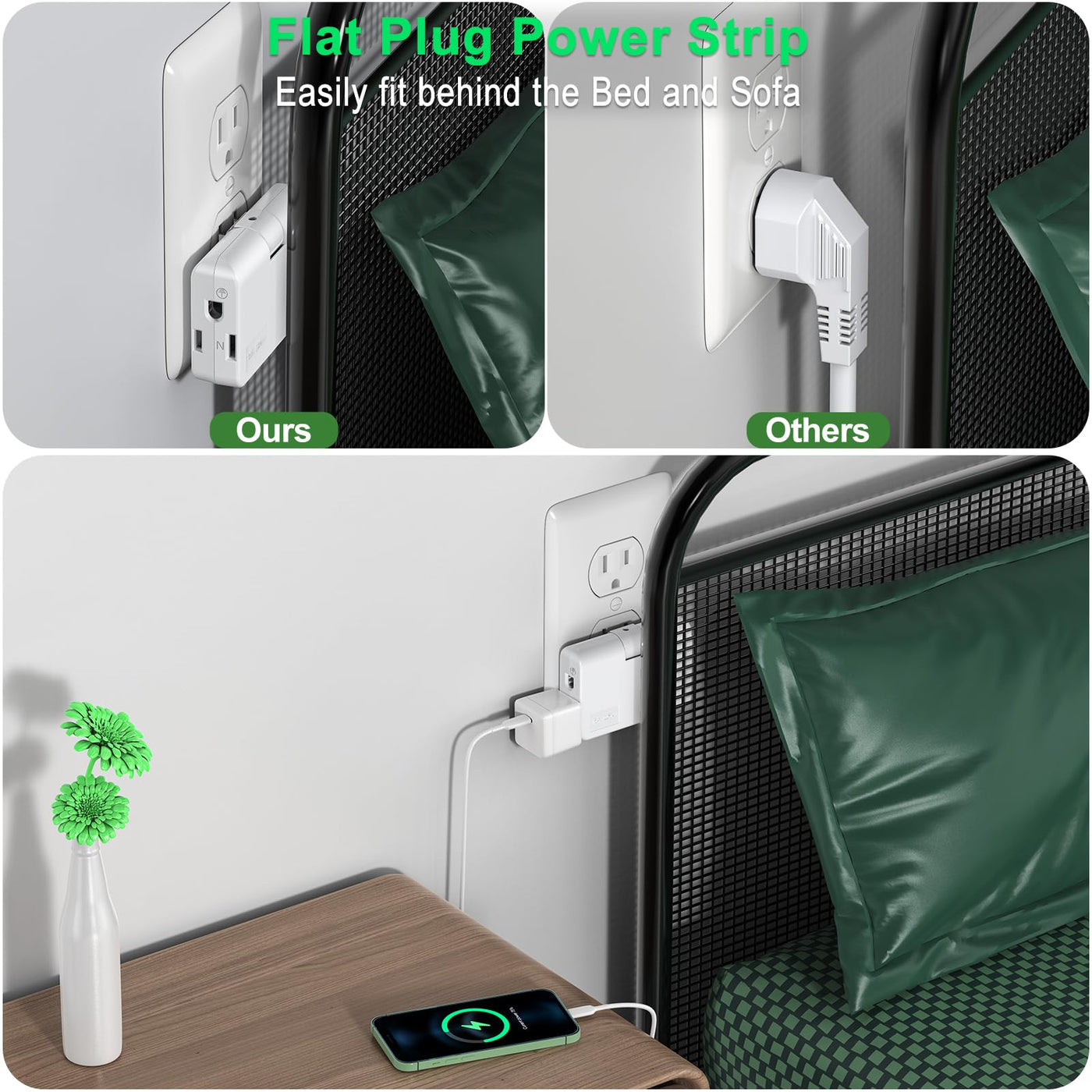 This Multiple Plug Outlet Is Easy To Use, Apply For Any Indoor Place With Socket, Especially For The Living Room, Bedroom, Bathroom, Kitchen, Hotel, Office And College Dorm Room