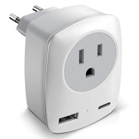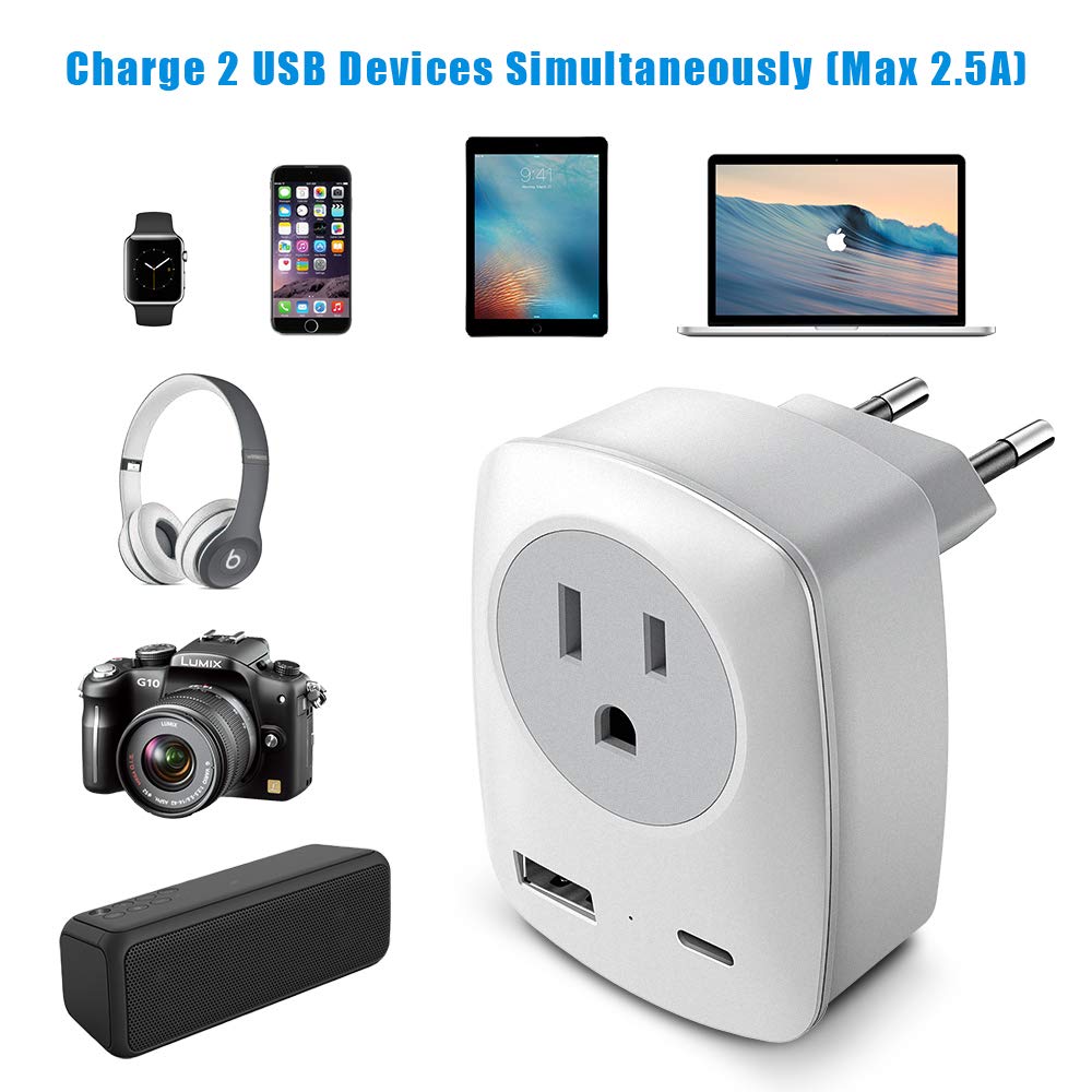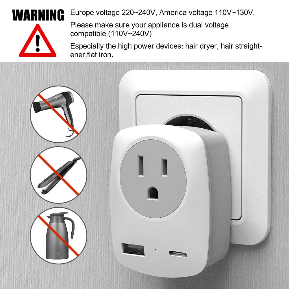 ?America To Europe Travel Adapter?This International Plug Adapter Can Be Used In Most European Countries Except Uk, And In Many Other Countries With Type-C Plug Outlets Such As Austria, Belarus, Belgium, Croatia, Denmark, Finland, France, Germany,Greece, Hungary,Portugal, Poland, Netherlands,Spain, Turkey, Italy And More. Note: It'S Not Work In Uk/Ireland/Scotland. | ?One Adapter Replaces 3 Chargers?This European Plug Adapter Combines 1 Usb-A Port, I Usb-C Port, And 1 Us Outlet Together, Allows You To Charge 3 Electronics Simultaneously, Such As: Iphone, Ipad, Smart Phones, Power Bank, Camera, Earbuds, Kindle, Laptop And More. | ?Warning?Jarvania Plug Adapter Does Not Convert Voltage, Only Converts Plug Shapes. Please Make Sure Your Appliance Is Dual Voltage Compatible. If Your Hair Dryer / Straightener / Hair Curler / Electric Toothbrush / Razor Supports 110V Input Only, Please Don'T Use It In Europe Because The Voltage In Europe Is Over 220V And May Destroy Your Appliance. | ?Compact And Light?Jarvania European Travel Adapter Is Small And Very Light With Simple Design, Which Is Perfect For A Carry-On When Traveling. The Robust Matte Finish Resists Scuffing And Scratches. Hard-Wearing Matte Finish, High-Gloss Detailing, And Cool-Blue Usb Ports Combine To Make Jarvania European Adapter A Truly Premium Travel Necessity In Europe. | ?18 Months Worry-Free Service? Jarvania European Plug Adapter Is Qualified With Fcc Ce And Rohs Certified Safety System. With Surge Protection, Short Circuit Prevention, Temperature Control, And Other Advanced Safety Features, Always Keep Users And Users
