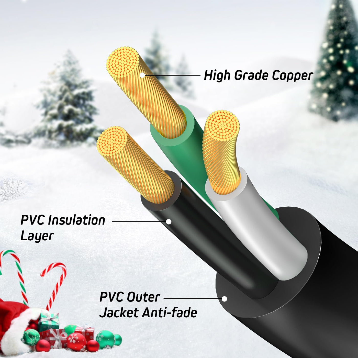 Q: What safety features does this extension cord have?A: The Eversimpleinc extension cord includes safety outlet covers for each plug, protecting against rain, snow, and dust, and is rated for use in wet locations, ensuring safe operation outdoors.