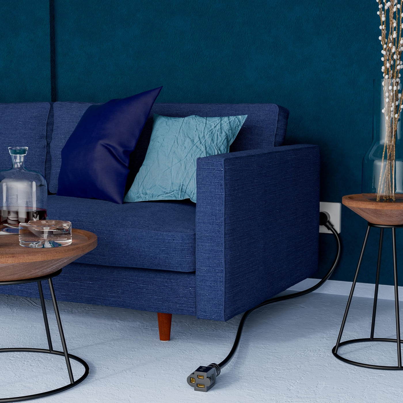 Q: What are the benefits of the 45 degree angle plug design?A: The 45 degree angle plug design prevents other outlets from being blocked, allowing you to use multiple sockets simultaneously. This feature is especially useful for tight spaces behind desks, couches, or appliances.