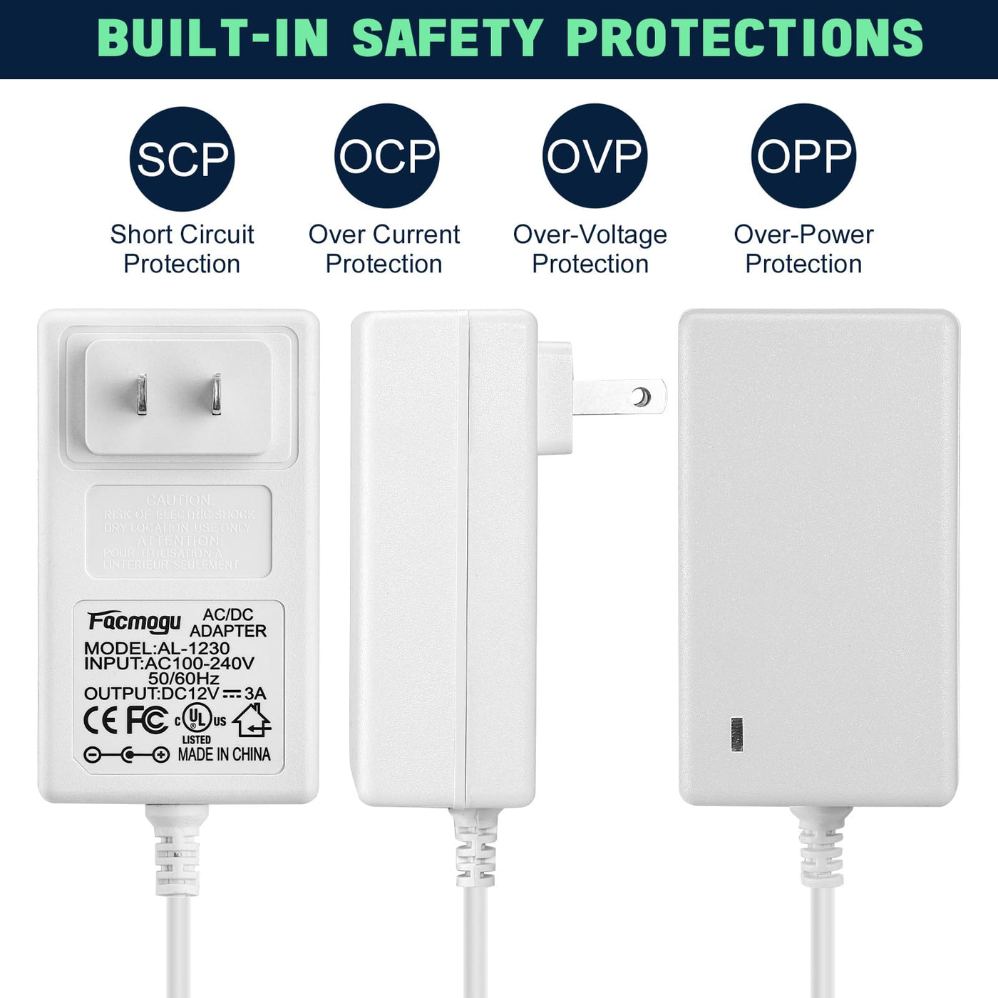 Q: Is this power adapter safe to use for my electronics?A: Yes, the Facmogu power adapter features built-in protection against over voltage, over current, and over temperature, ensuring safe operation and protecting your devices from potential damage.