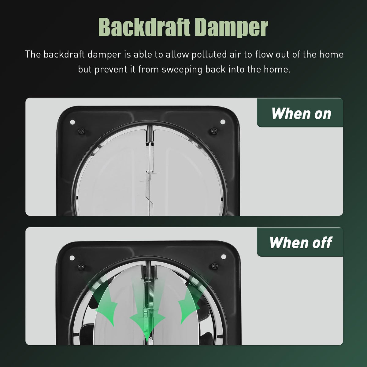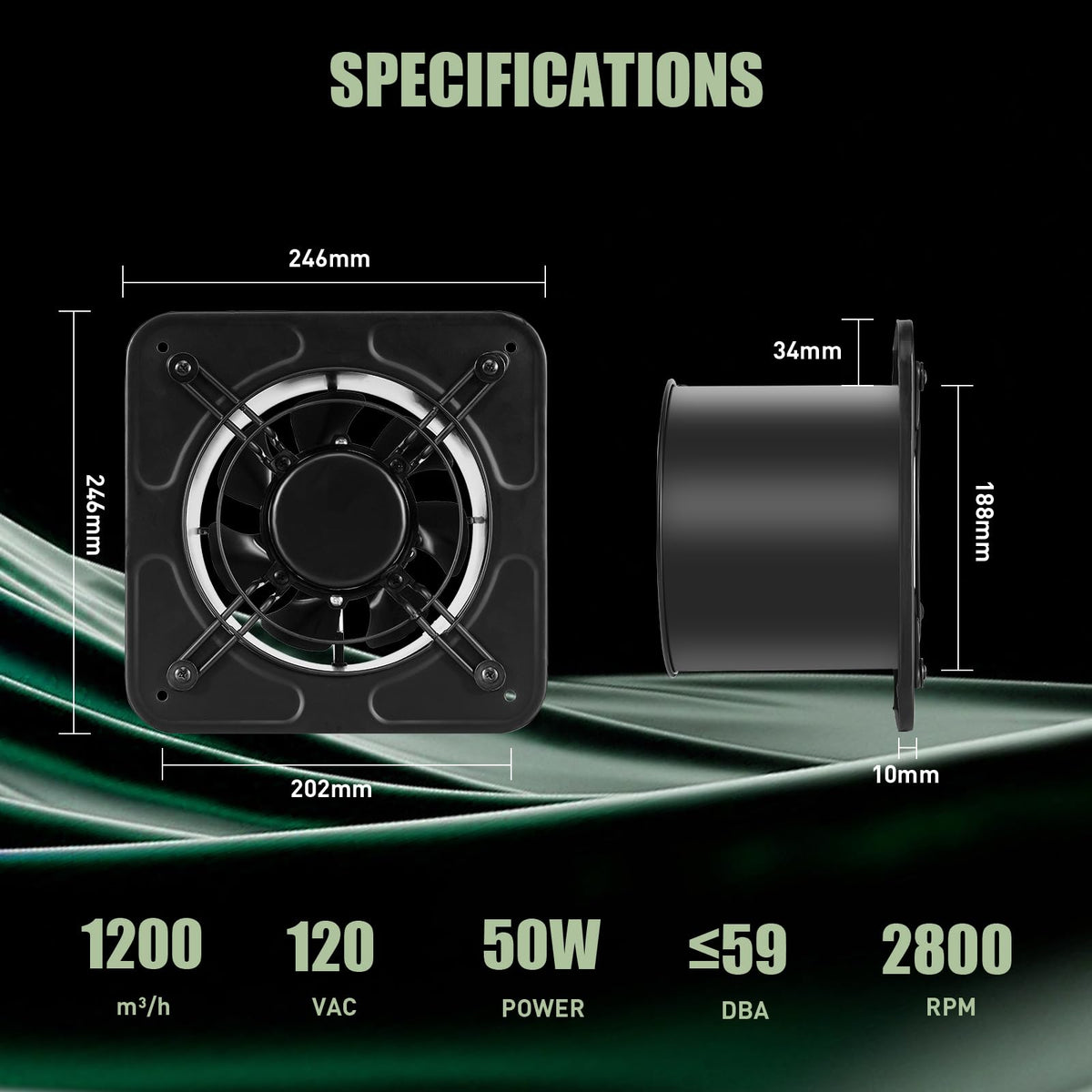 Fareast 8 Inch Garage Exhaust Fan, Wall Mounted Kitchen Exhaust Fan, Metal Attic Fan With Backdraft Damper, 1200 M/H Air Volume