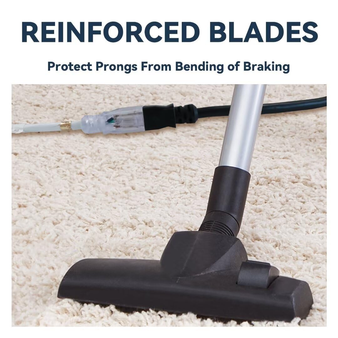 Q: What safety features does this extension cord have?A: This extension cord includes a lighted indicator at the end, which lights up when the cord is powered, enhancing visibility in dark environments and reducing the risk of tripping.