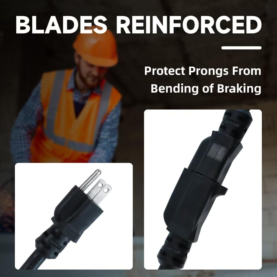 Q: What is the wire gauge and amp rating of this extension cord?A: This extension cord features a 12 AWG wire gauge with a 15A maximum amp rating, making it suitable for heavy-duty applications.