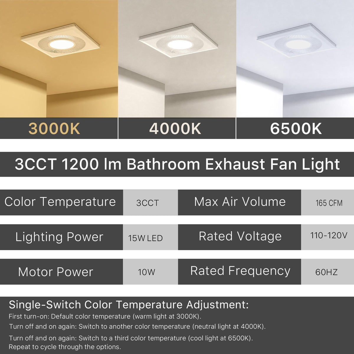 An Energy Efficient 10W Pure Copper Motor And 15W Led Light, The Fan Has An Airflow Of Up To 165Cfm To Ensure Efficient Air Circulation. Key Features Recap: Bathroom Exhaust Fan: 42Db Ultra-Low Noise Moonlit Led Light: 15W, 1200 Lumens, 3000K/4000K/6500K Available, Soft & Non-Glaring High-Quality Materials: Pure Copper + Fire-Resistant Plastic Fcc Certified: Meets Industry Safety Standards For Bathrooms, Kitchens, Garages Experience The Ultimate In Home Ventilation And Lighting With The Fwastt Exhaust Fan Light. Order Now And Elevate Your Living Spaces.