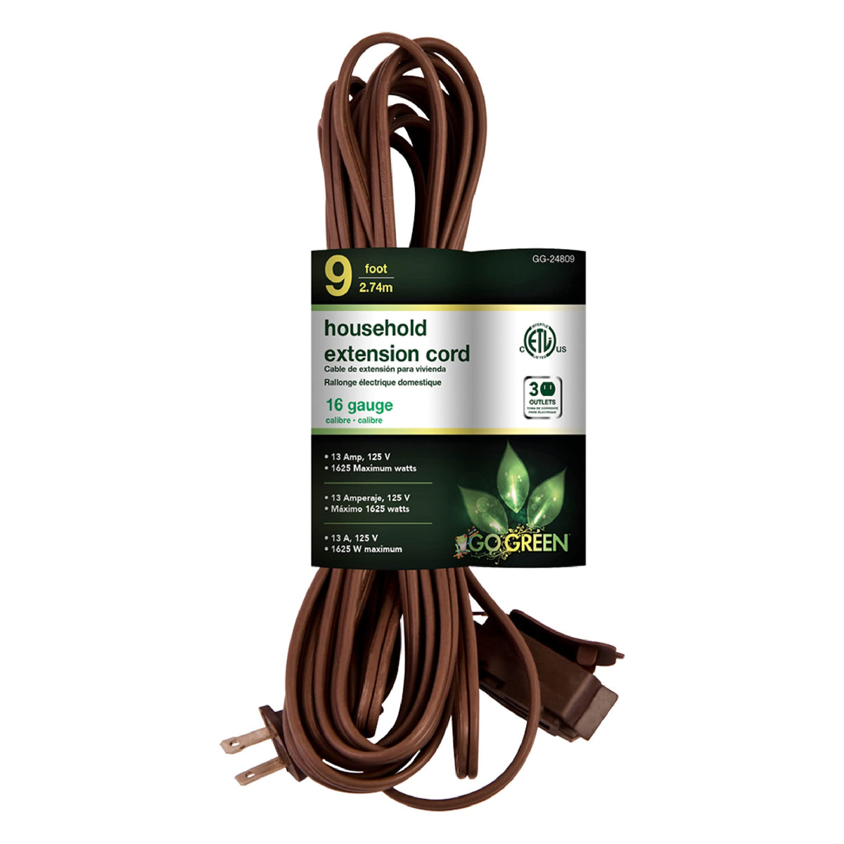 Gogreen Power (Gg 24809) 16/2 9� Household Extension Cord, 3 Outlets, Brown, 9 Ft