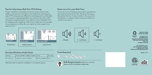 Q: What is the airflow capacity of the Good Housekeeping Kingsley bathroom exhaust fan?A: The Good Housekeeping Kingsley bathroom exhaust fan operates at a capacity of 90 CFM (cubic feet per minute), effectively removing excess humidity from your bathroom.