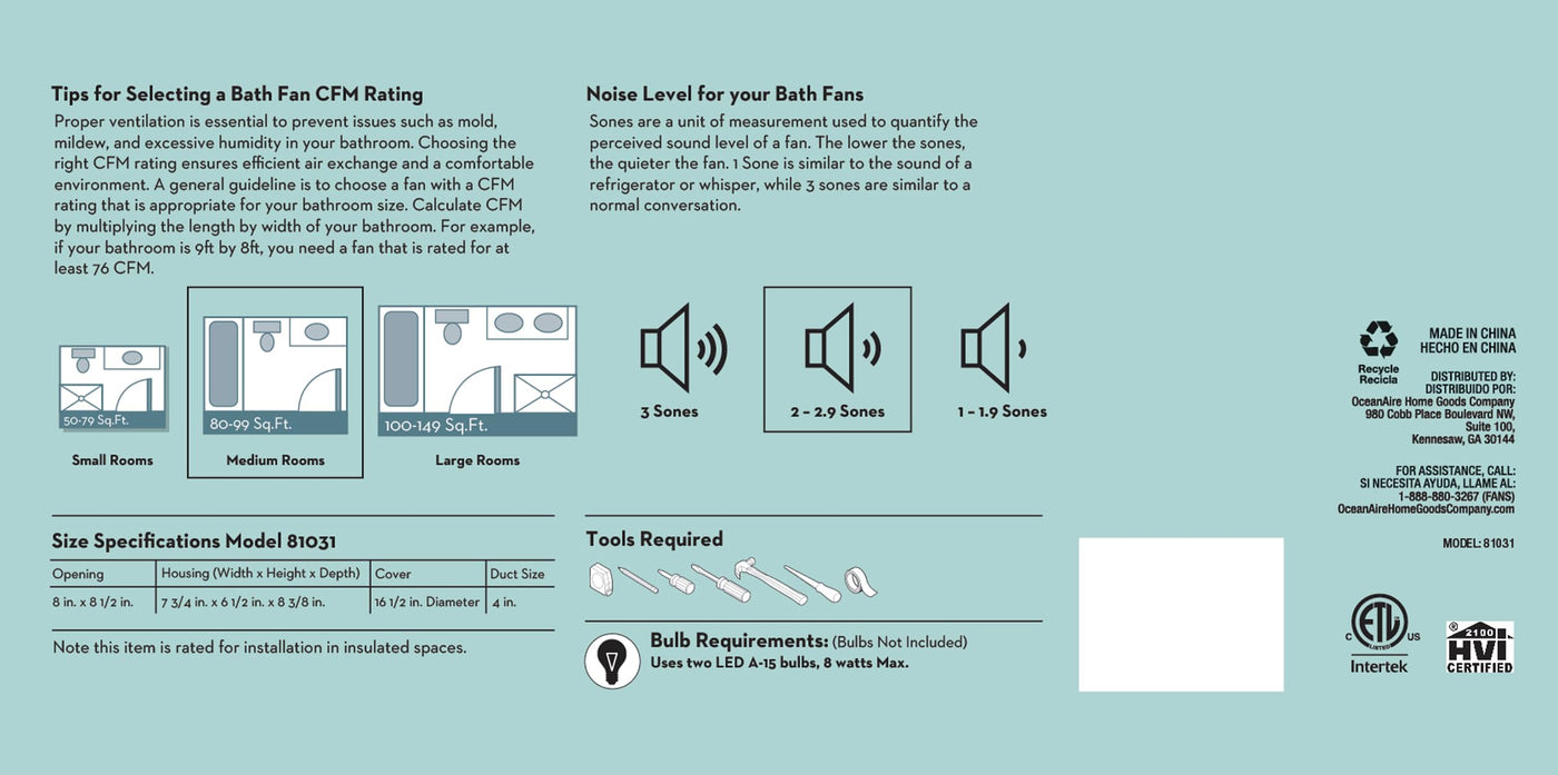 Removes Excess Humidity To Prevent Buildup Of Moisture In Your Bathroom | Hvi Certified To Operate At 2.5 Sones With 90 Cfm Of Air Movement | Premium Glass Shade With Decorative Framed Enclosure | Etl Listed For Safe Use Over Shower Enclosures And Bathtubs When Connected To A Gfci Circuit | Is Backed By Good Housekeeping