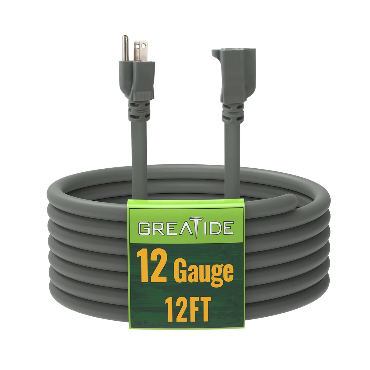 Greatide 12 Ft Outdoor Extension Cord 12/3 Sjtw Heavy Duty Grey Extension Cable With 3 Prong Grounded Plug Power Cord For La