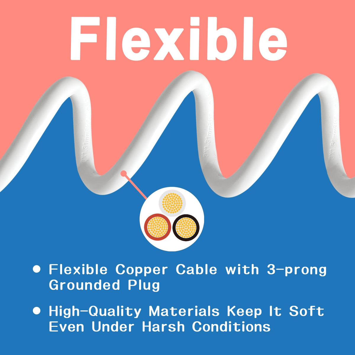 Greatide Indoor Outdoor Extension Cord 20 Ft, 16/3 Sjtw Weatherproof White Electrical Cords, 13 Amp Heavy Duty 3 Prong Power Cab