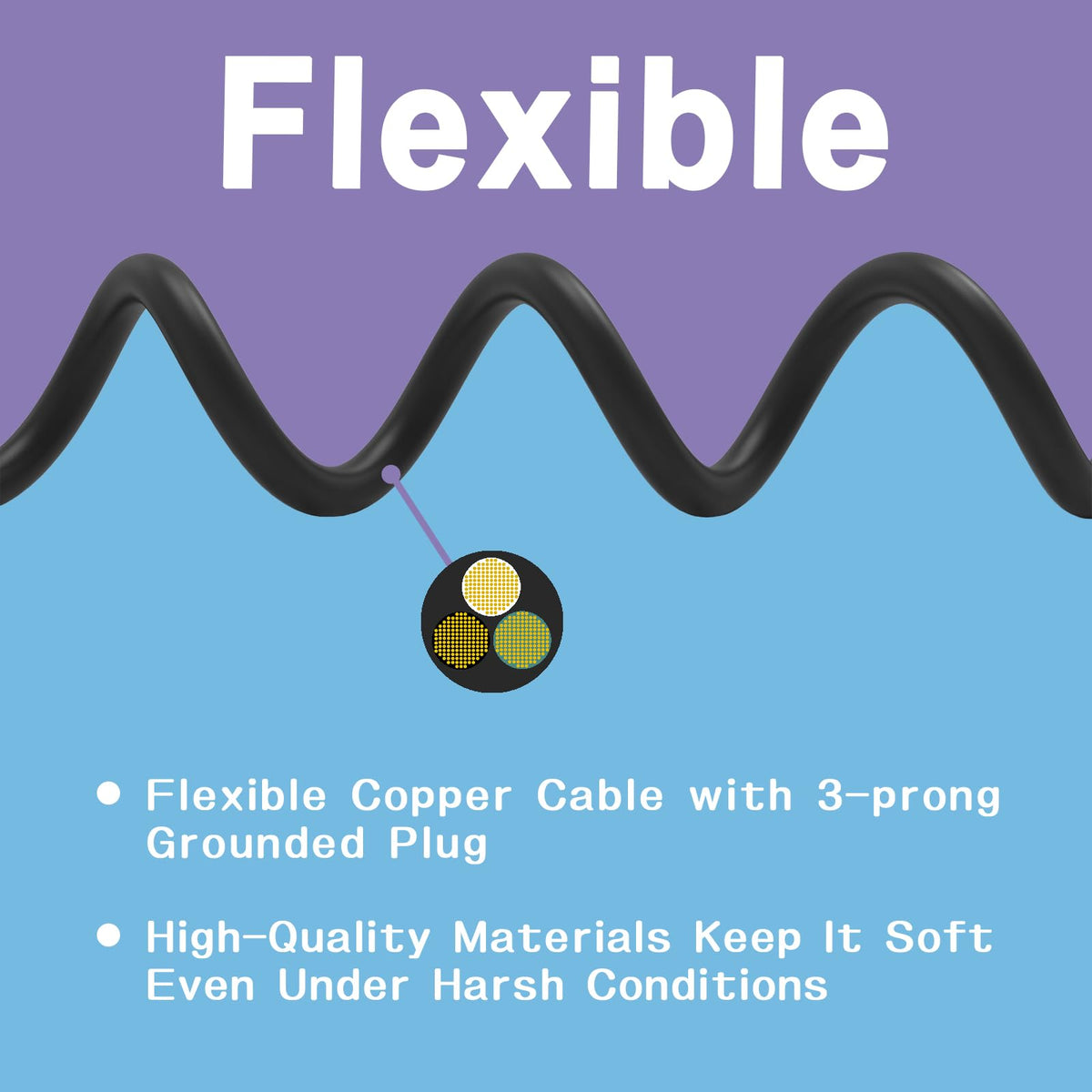 Greatide Extension Cord Covering: Pvc Material + Sjtw Thermoplastic Wire Gauge: 16 Awg With 3 Conductors Grounded Amp Rating: 13A Max Voltage Rating: 125V Max Rated Power: 1625 Watts