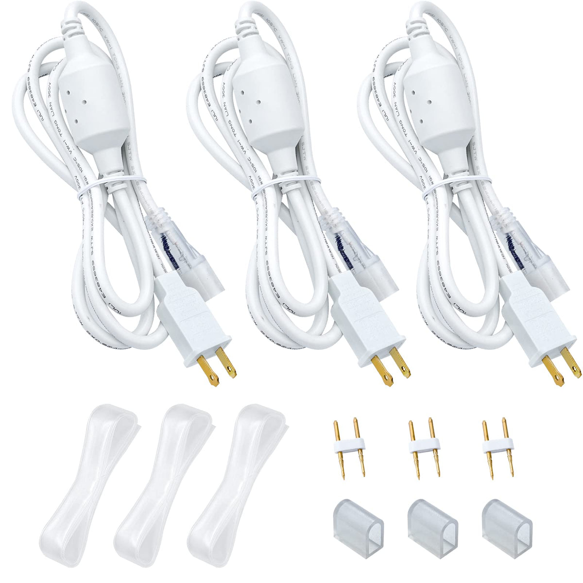 Gzbtech 4.92Ft Power Cord Connector Kit For 8 * 16Mm Led Neon Rope Light,With Pins & End Cap & Heat Shrink Tube Set Of 3