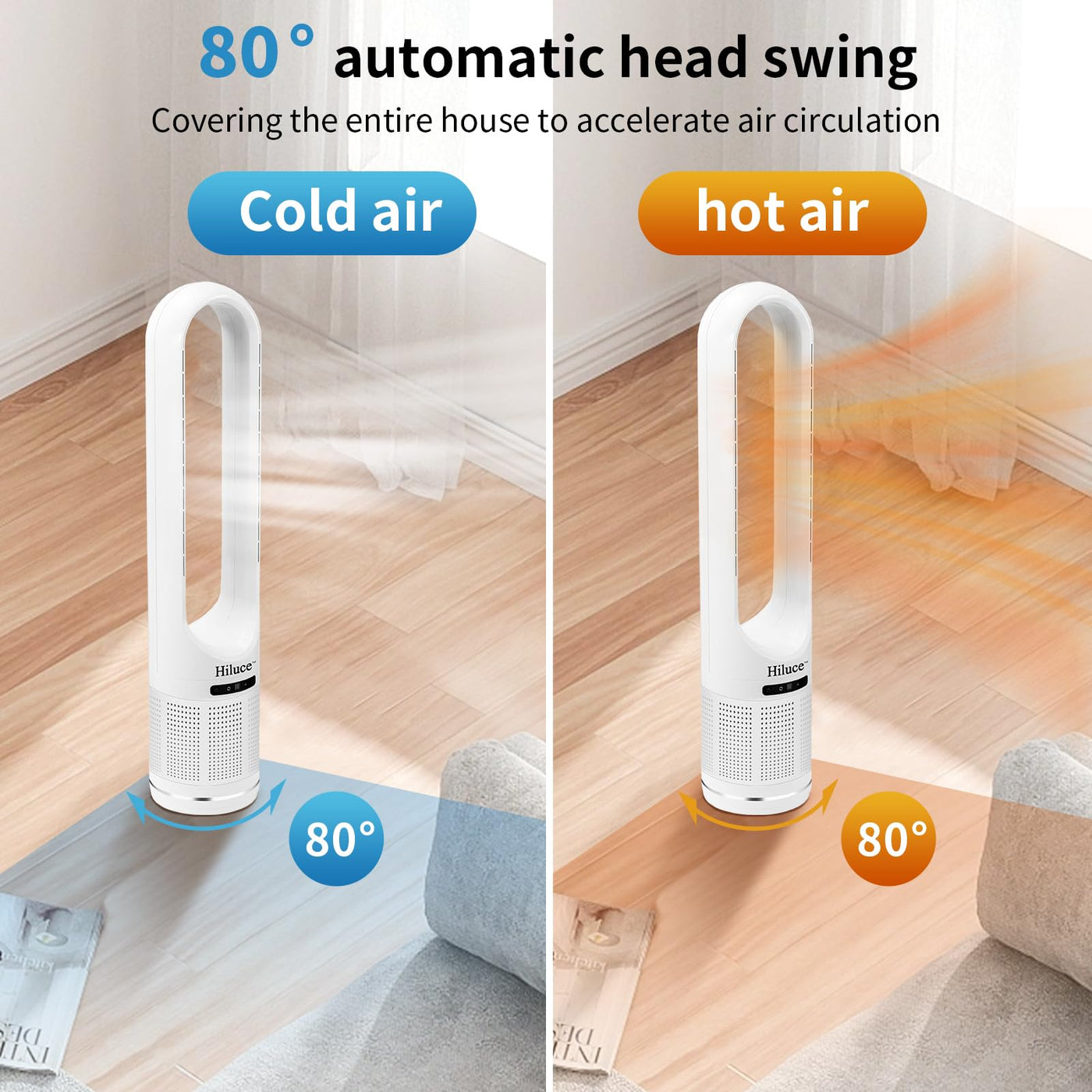 Hiluce Fan And Heater Combo,3 In 1 Bladeless Fan With Remote,Space Heater Fan,Hepa Filter,Tip Over Switch,26Ft/S Quiet Tower Fan