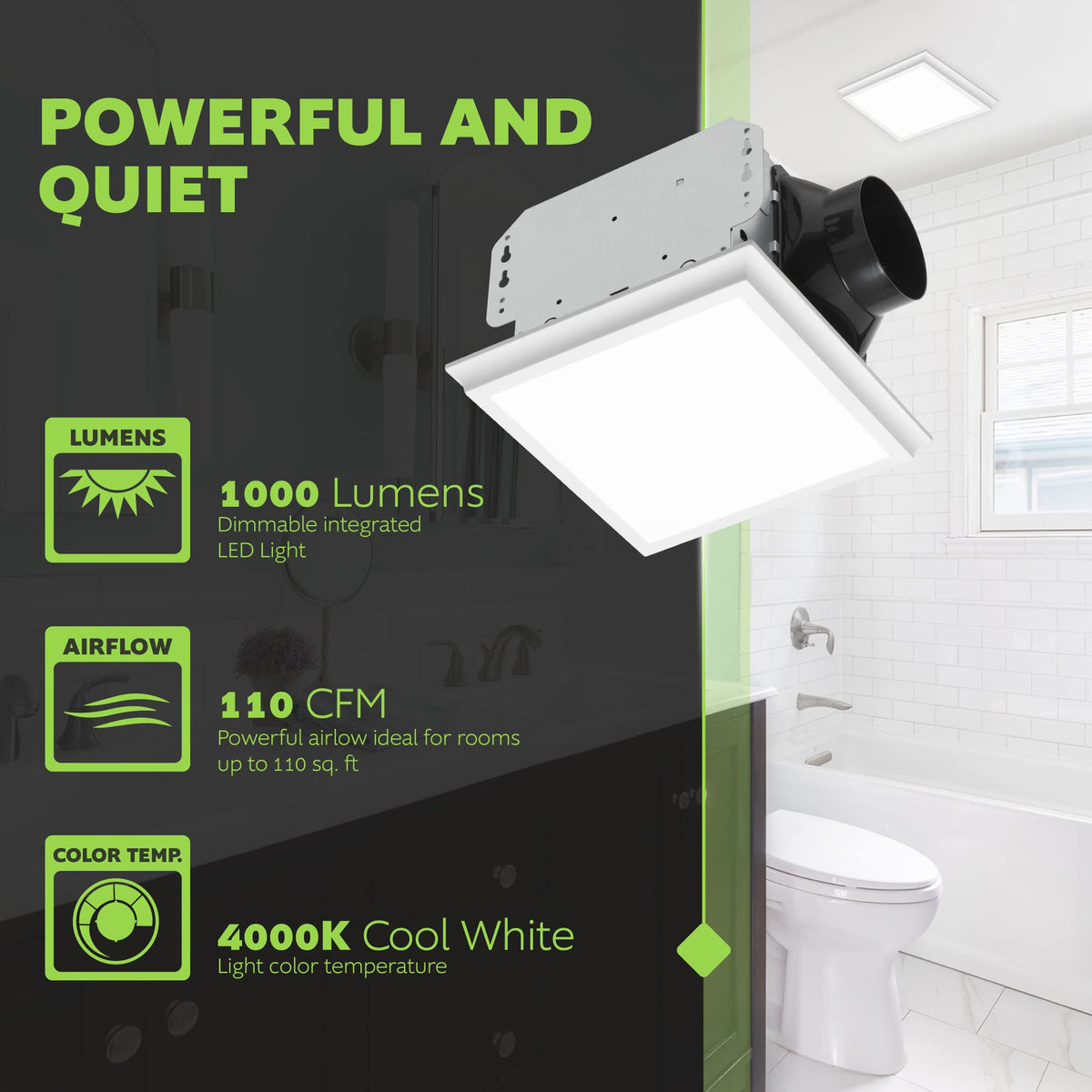 Homewerks Ventilation Fans Look Great Throughout The Home. The Sleek Design Of This Homewerks Exhaust Fan With Led Light Takes This Bath Fan To A New Level. Don'T Like The Look Of The Average Bath Fan? Homewerks Ventilation Fan Is Designed To Look More Like A Decorative Light. It Includes An Integrated, Long Lasting Led Light That Delivers 4000K Cct Cool White Color Temperature With 1000 Lumens, Which Will Provide The Ideal Brightness For Any Room. An Added Bonus Is That The Light Can Be Dimmed When Connected To A Dimmer Switch. The Light Is Long Lasting With A 30,000 Hours Led Life Span. The Fan Provides A Powerful Airflow For A Healthier Home With 110 Cfm And Works Best For Rooms Up To 110 Square Feet. 2.0 Sones Is Quiet, So The Fan Provides The Same Sound Level As A Soft Conversation. This Exhaust Fan Has A Standard Fan Housing, Which Makes Installation Easier Because Generally No Cutting Or Attic Access Is Required To Install. Not Just Limited To A Bathroom, This Fan Can Be Installed In A Laundry Room, Exercise Room, Or Anywhere In The Home Where Humid Air Needs To Be Exhausted. Brighten Up Your Home With This 110 Cfm Dimmable Led Exhaust Fan From Homewerks.
